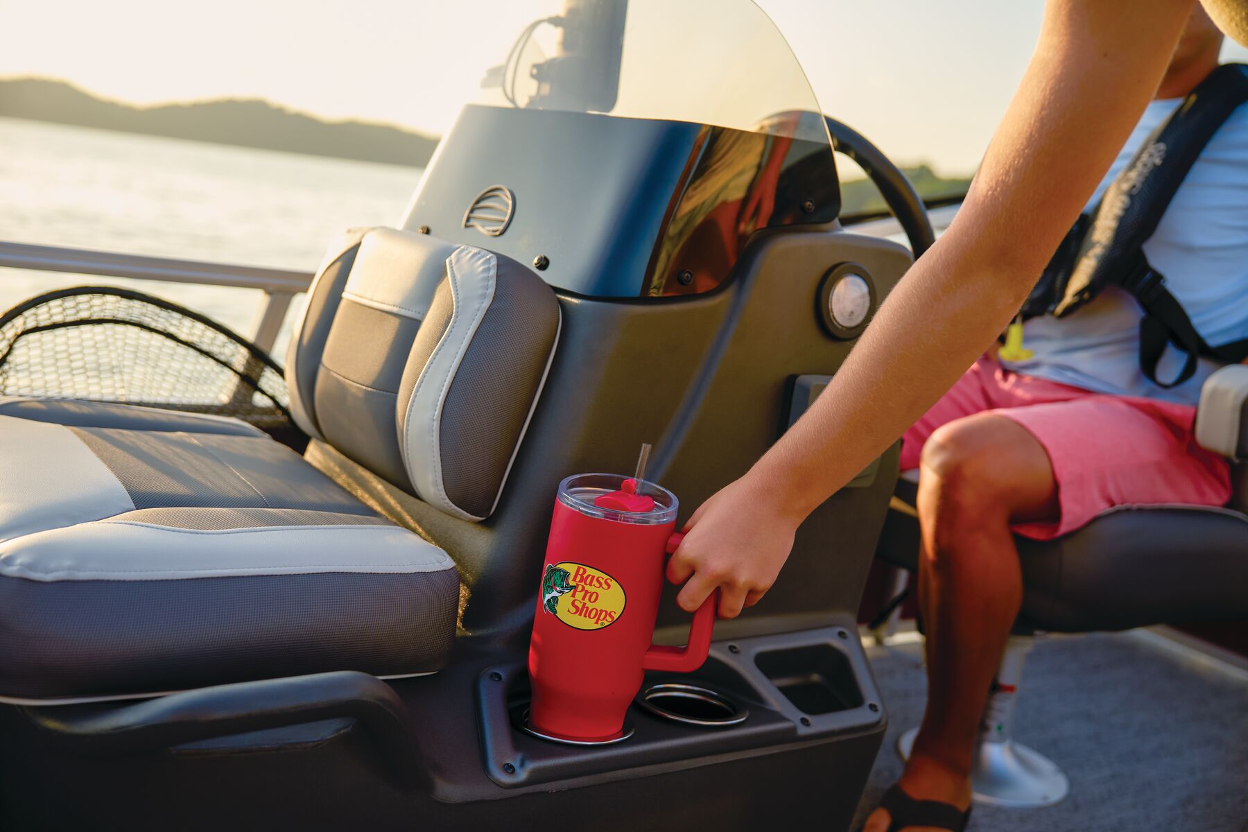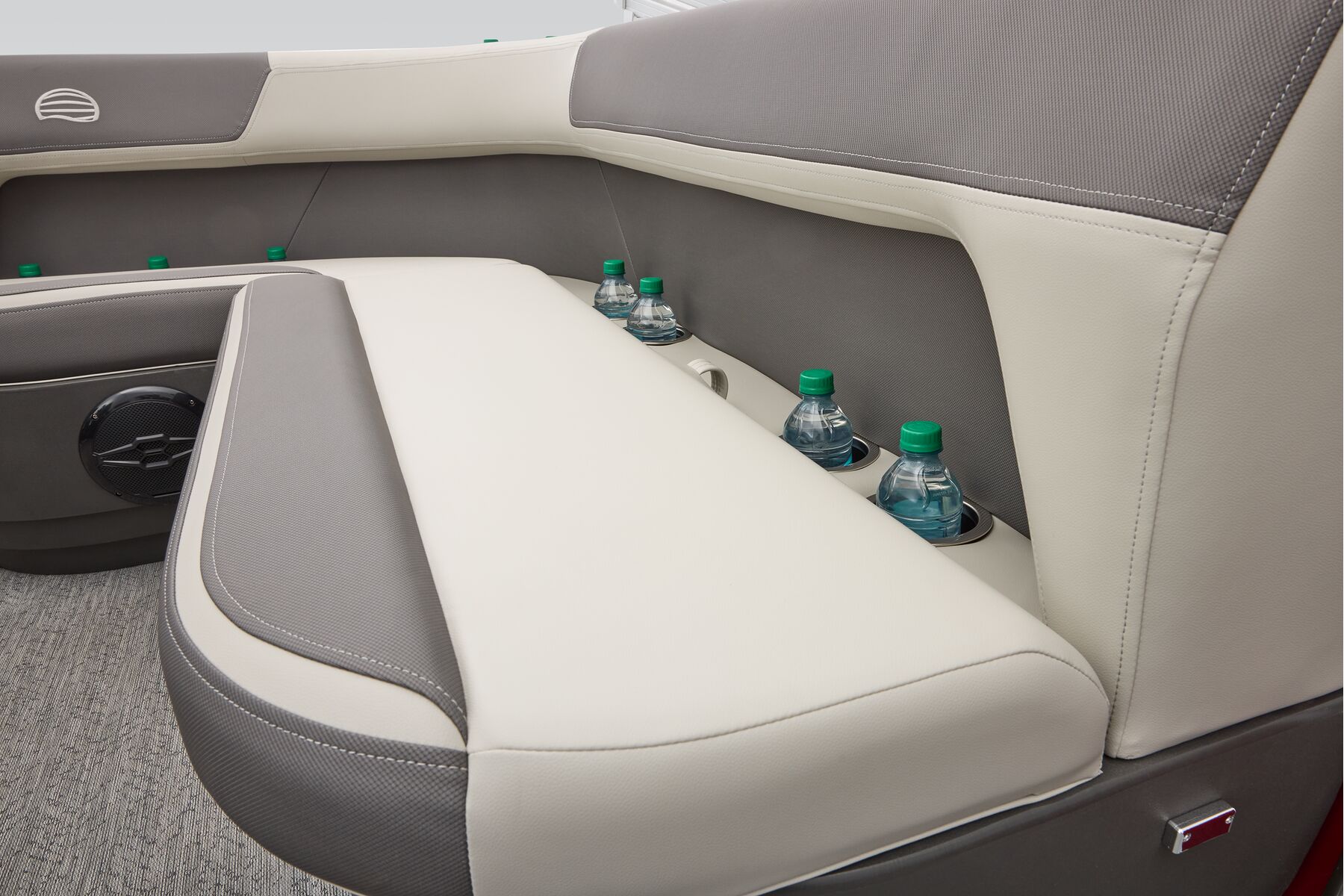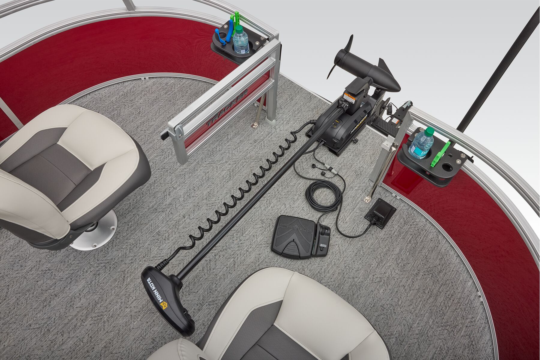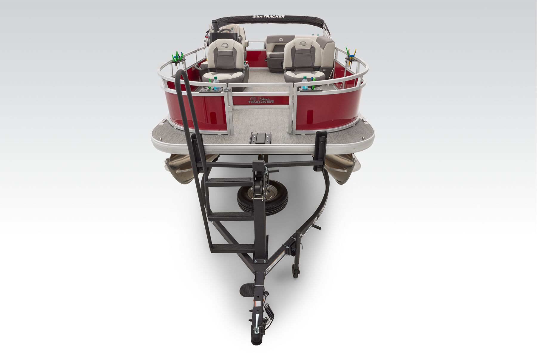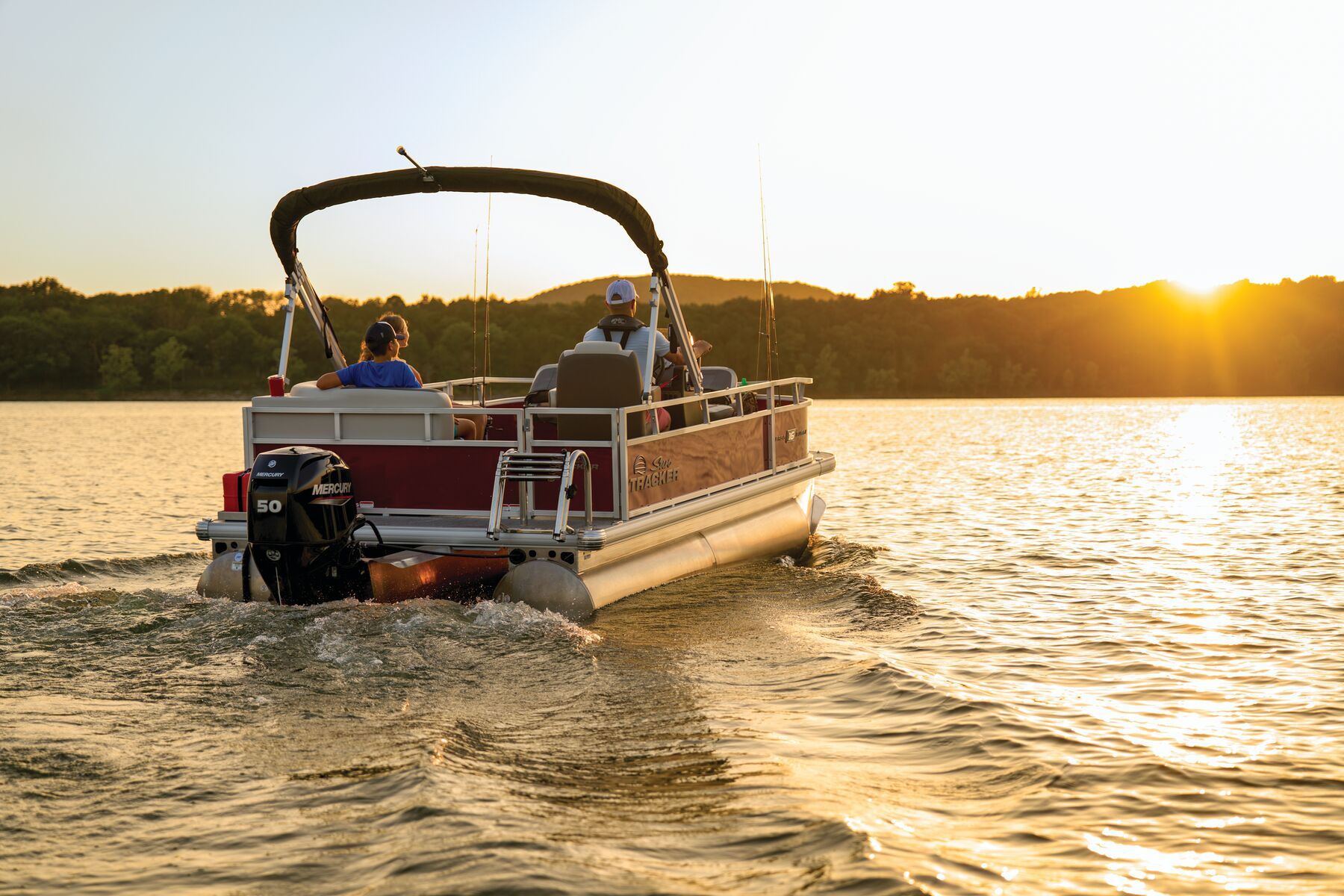 This seven-passenger fishing pontoon hits the water with new console and lounge designs. Get three extra cubic feet of storage thanks to clever backrest cut-outs. The redesign also adds a seat in front of the driver console, phone compartments, and four more cupholders. Cast from the shade of a standard 7' bimini top in one of the two folding fishing seats. Find your spot on the lake from the decked-out driver console, which comes with its own rod holder.