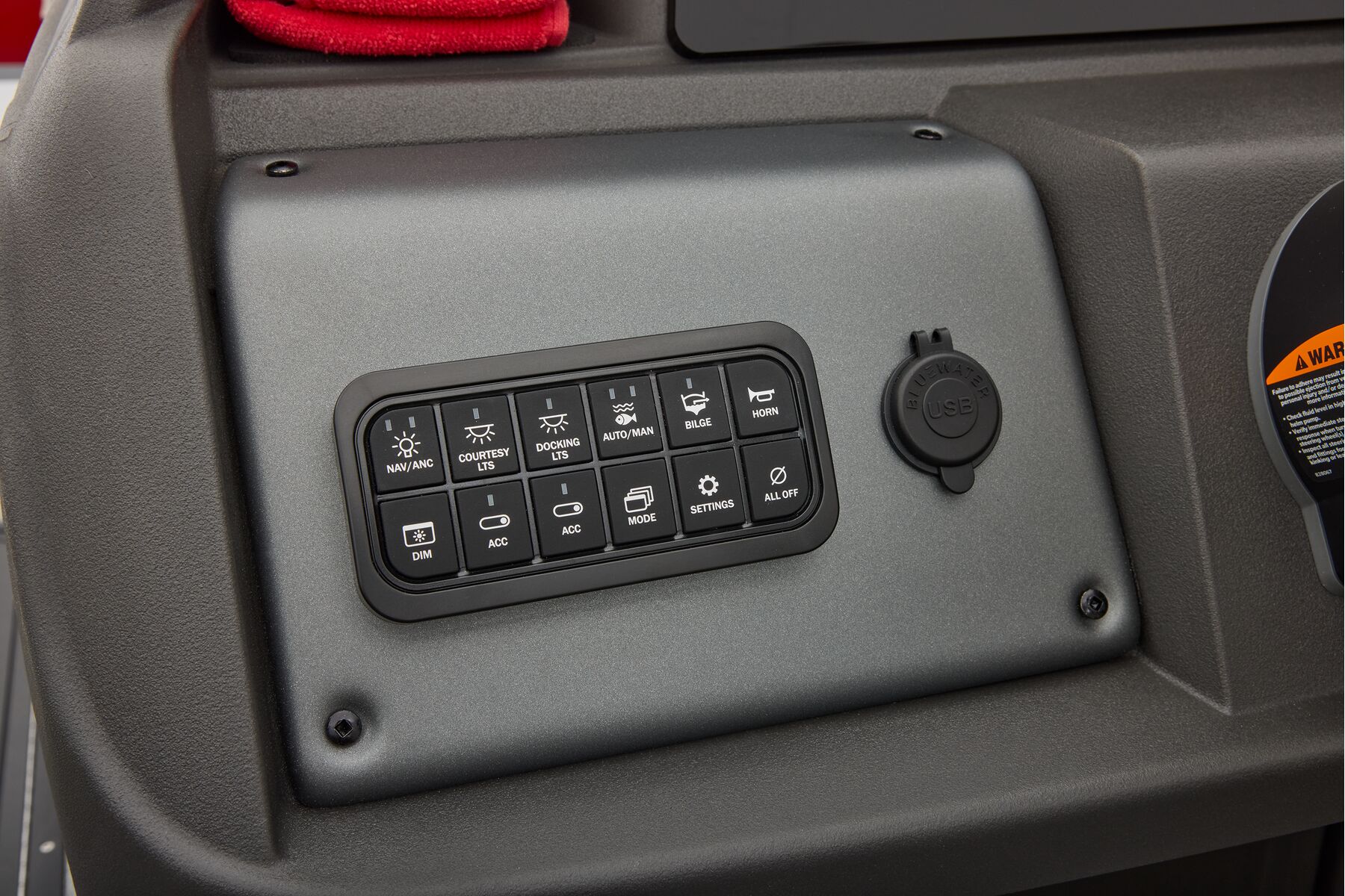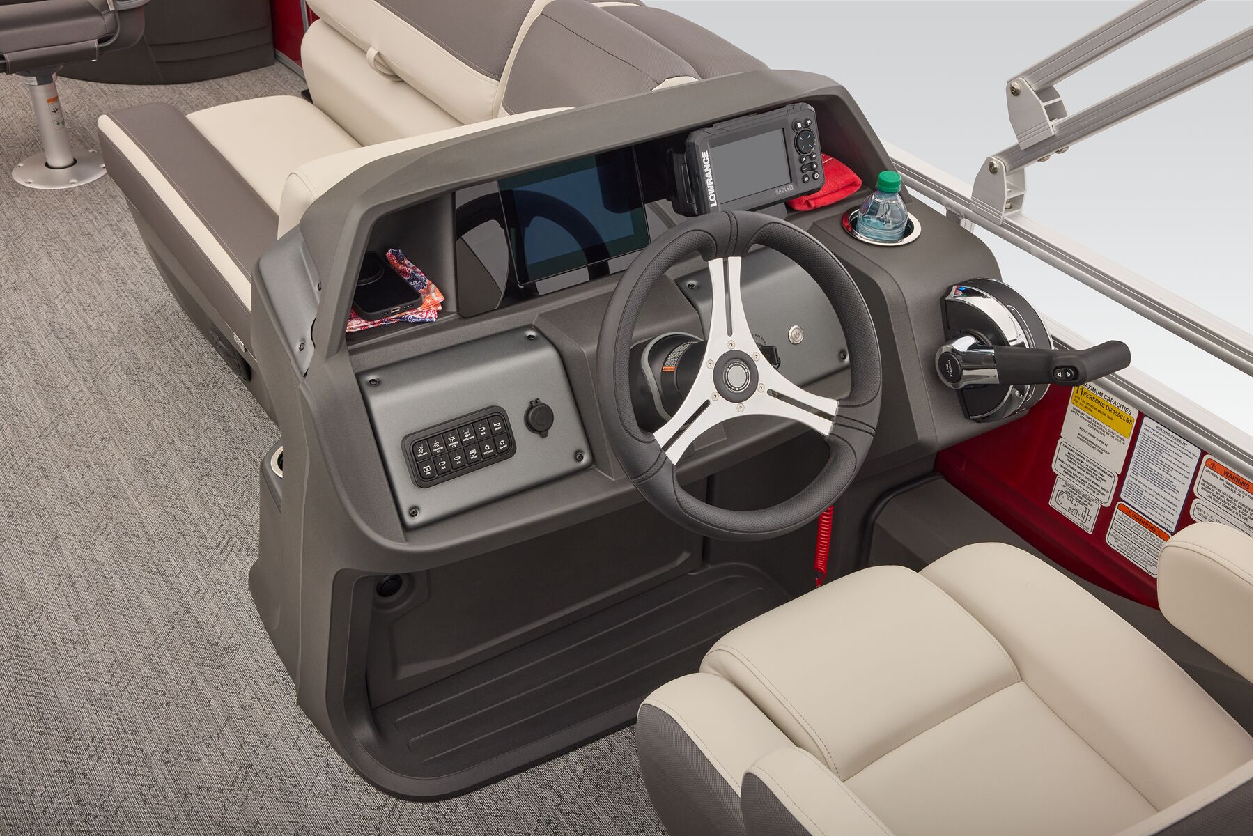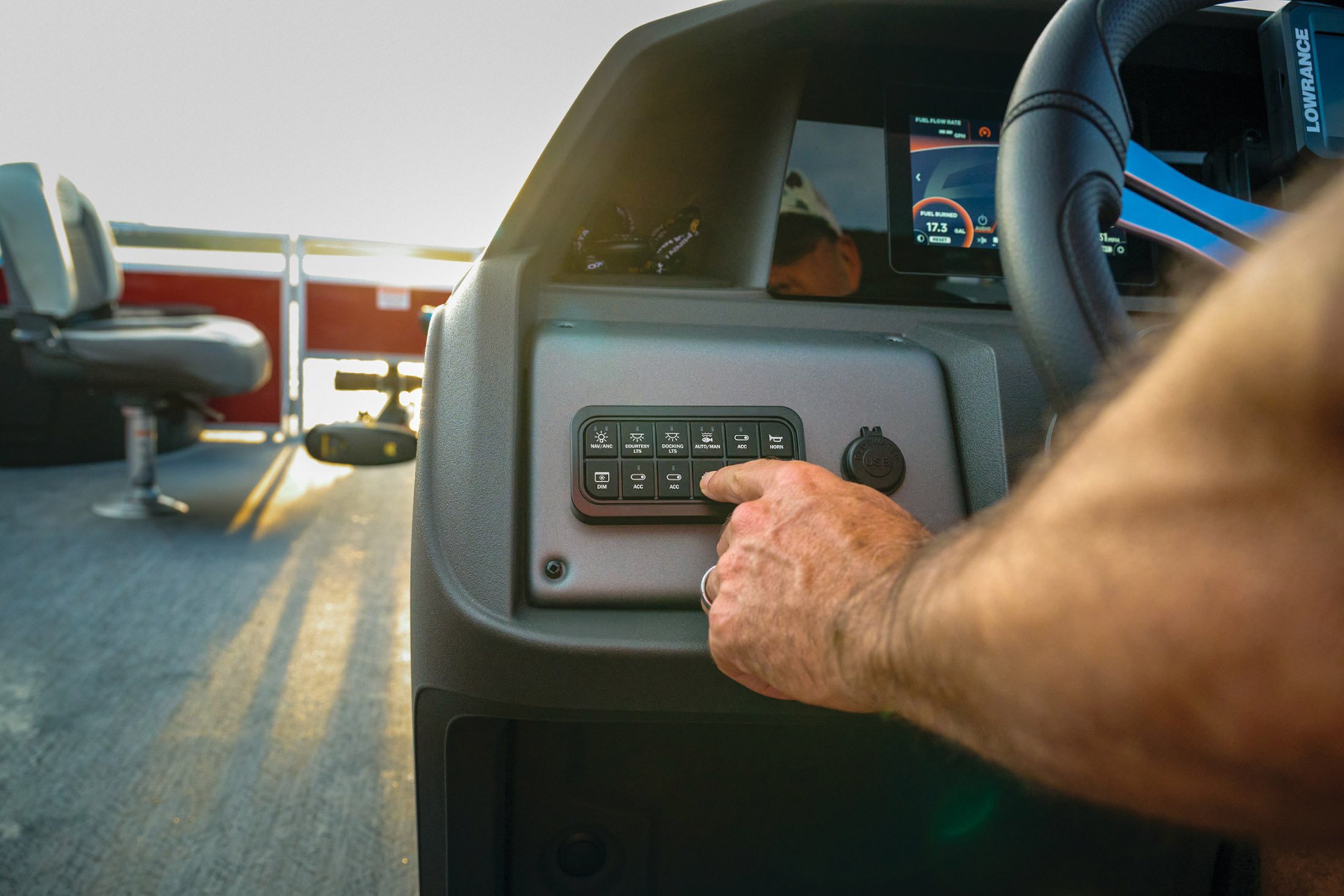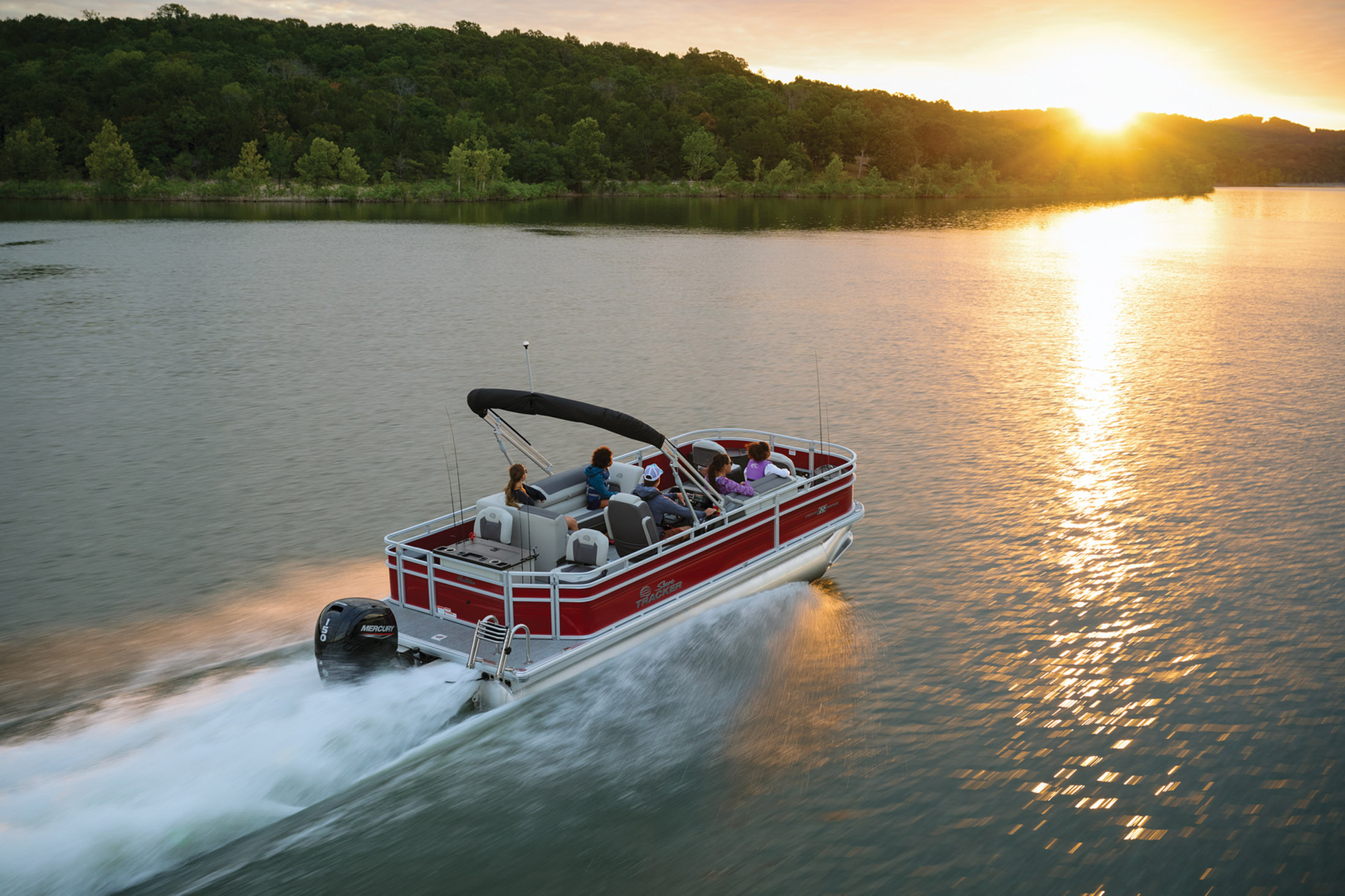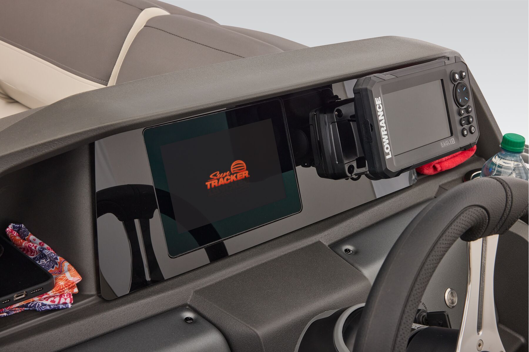Note: SunTracker’s innovative new FLARE touchscreen gauge display relies on proprietary digital engine data not available from all engines. Boats equipped with optional Mercury 9.9ELPT FourStroke or 20ELPT FourStroke engines will experience limited monitoring capability. See dealer for details.