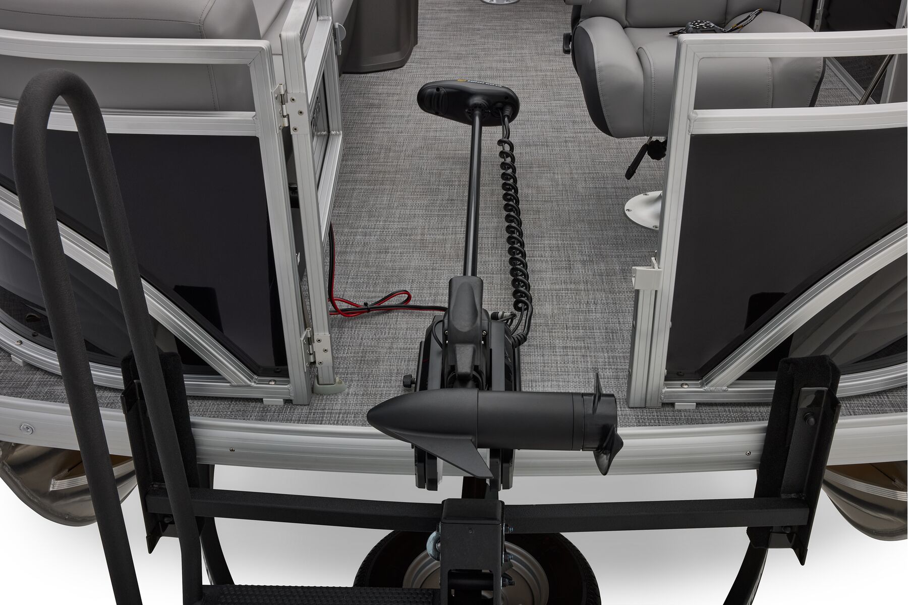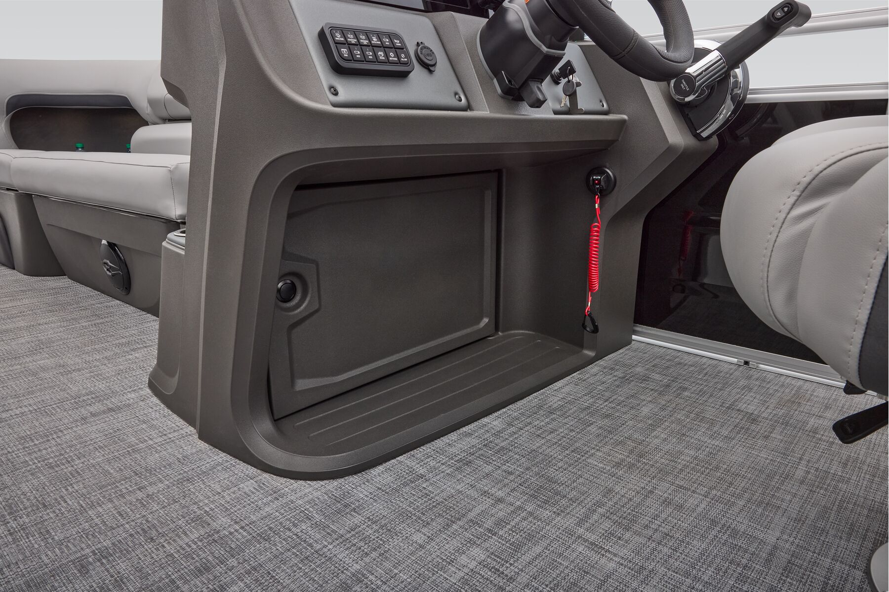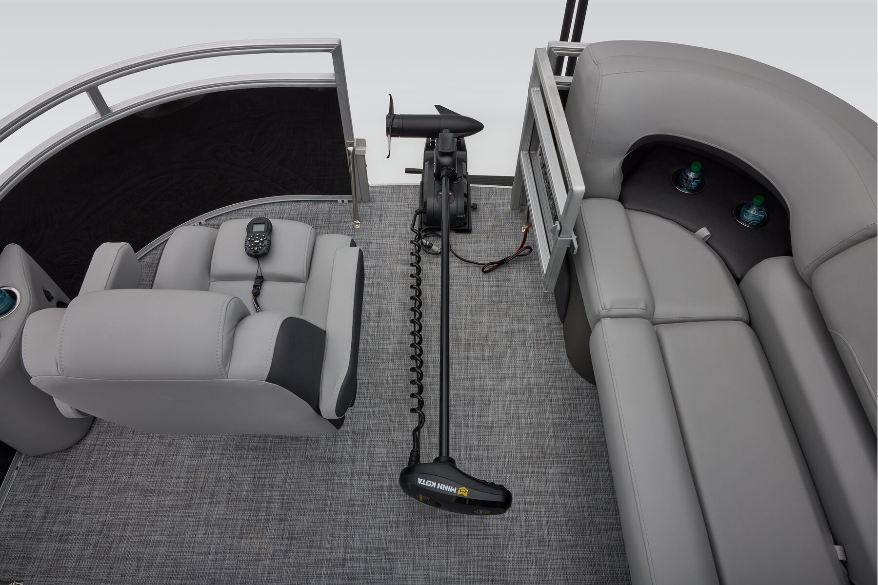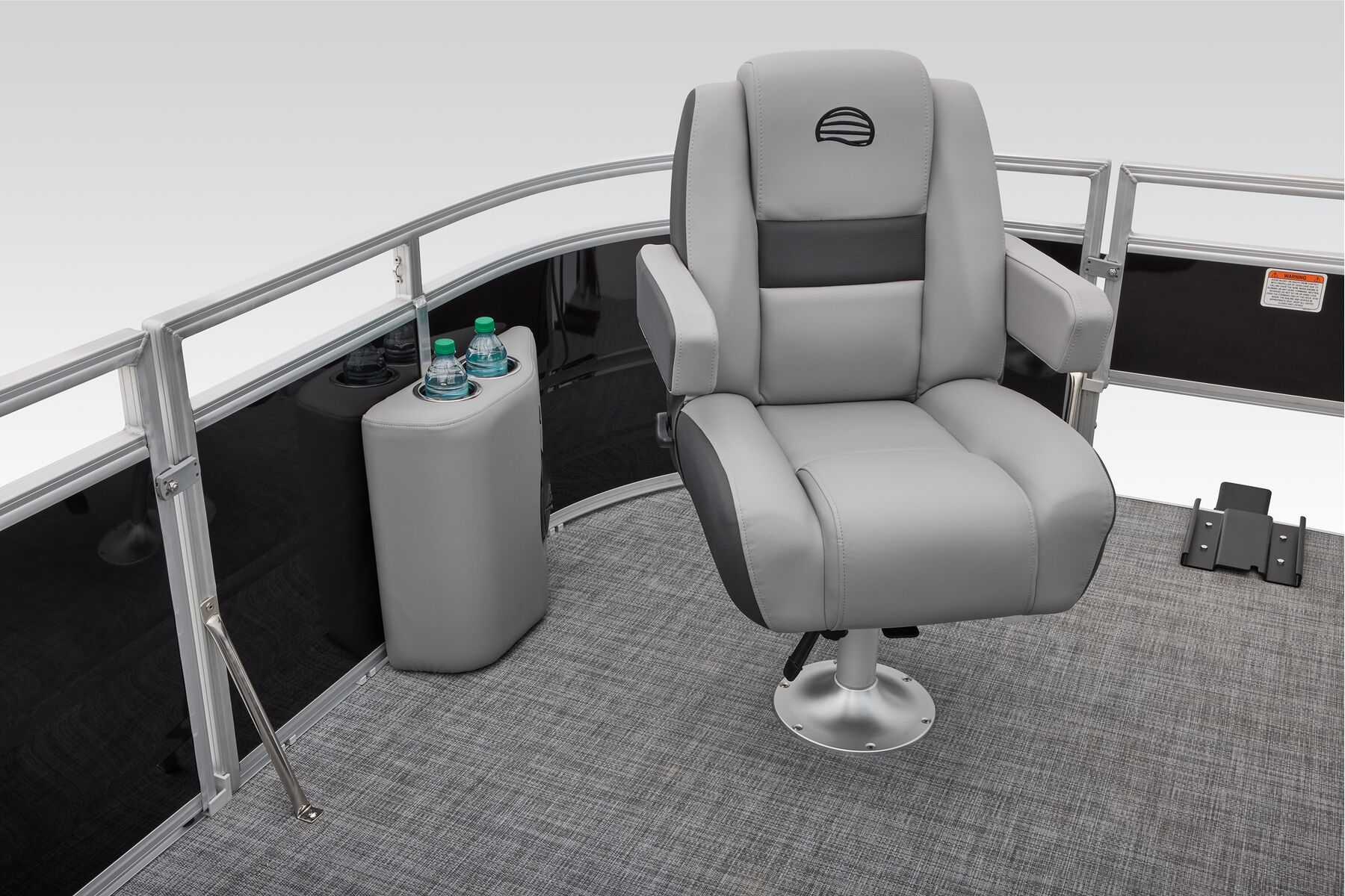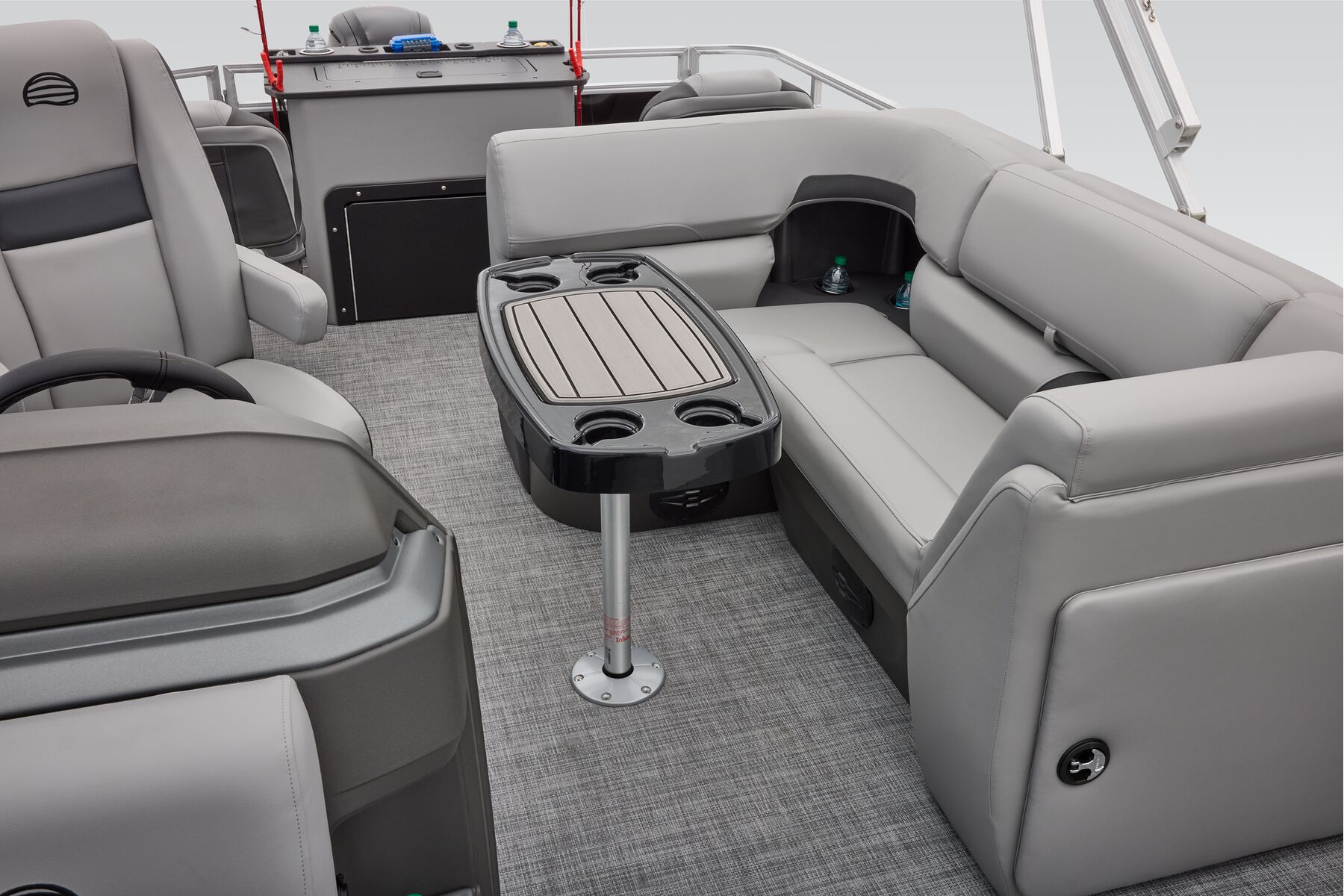 The party for up to 10 people starts with the dual lounges that boast STOW MORE™ compartments for packing and securing supplies. The 2026 model adds a new, wider ladder that makes reboarding easier. The new year also brings cut-out sections in the backrests that give you more cupholders and space for gear. For the anglers, there are swiveling pedestal fishing chairs on both ends of the pontoon and an 8-gal. aerated livewell complete with a rod holder and a composite lid with an integrated fish ruler.