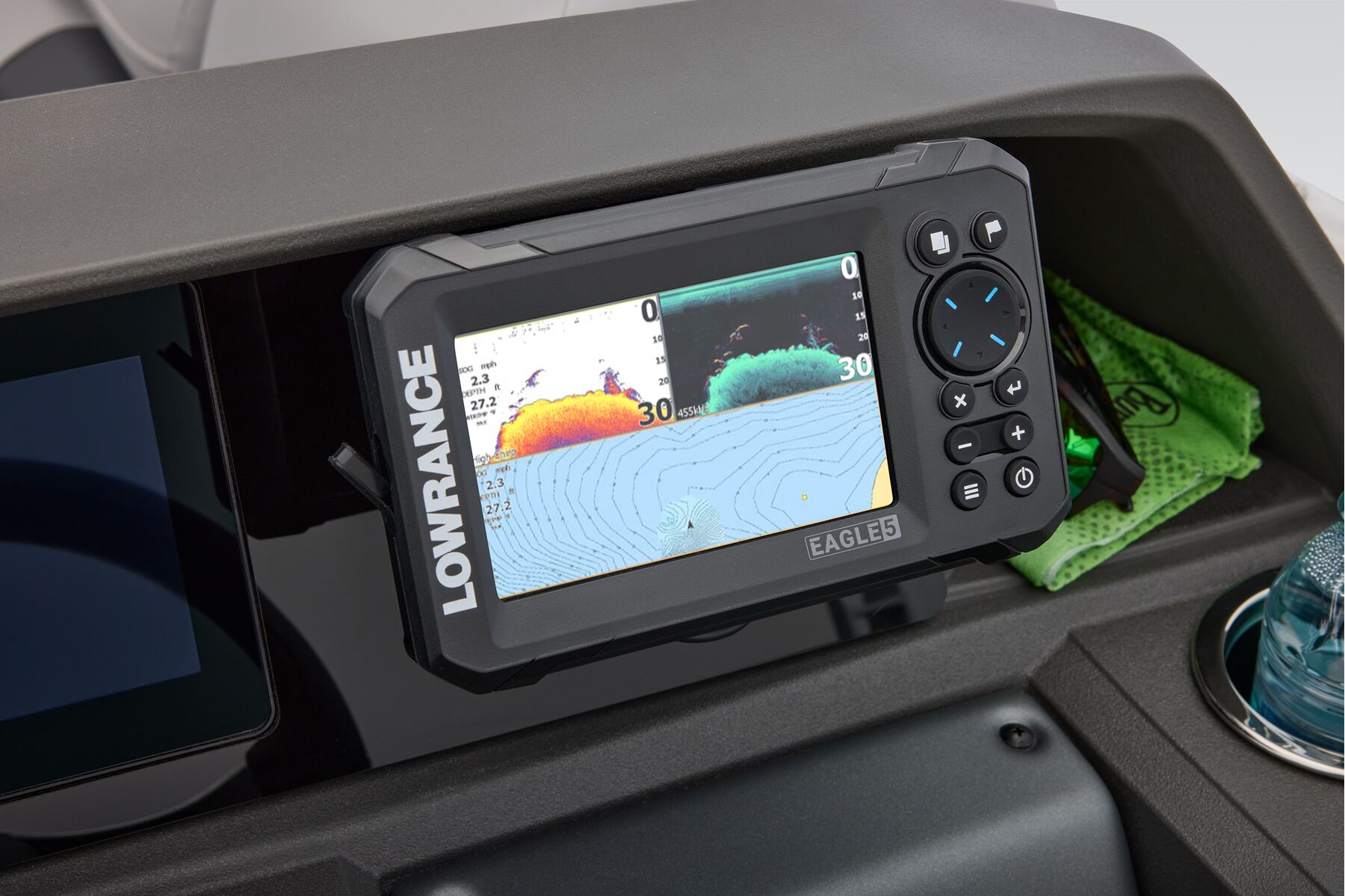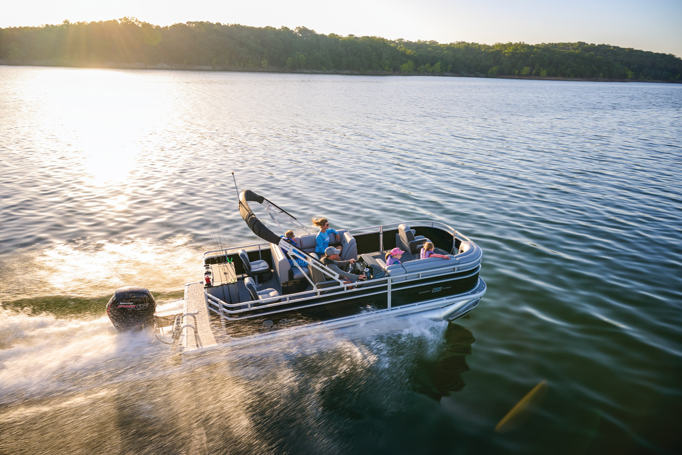 Note: SunTracker’s innovative new FLARE touchscreen gauge display relies on proprietary digital engine data not available from all engines. Boats equipped with optional Mercury 9.9ELPT FourStroke or 20ELPT FourStroke engines will experience limited monitoring capability. See dealer for details.