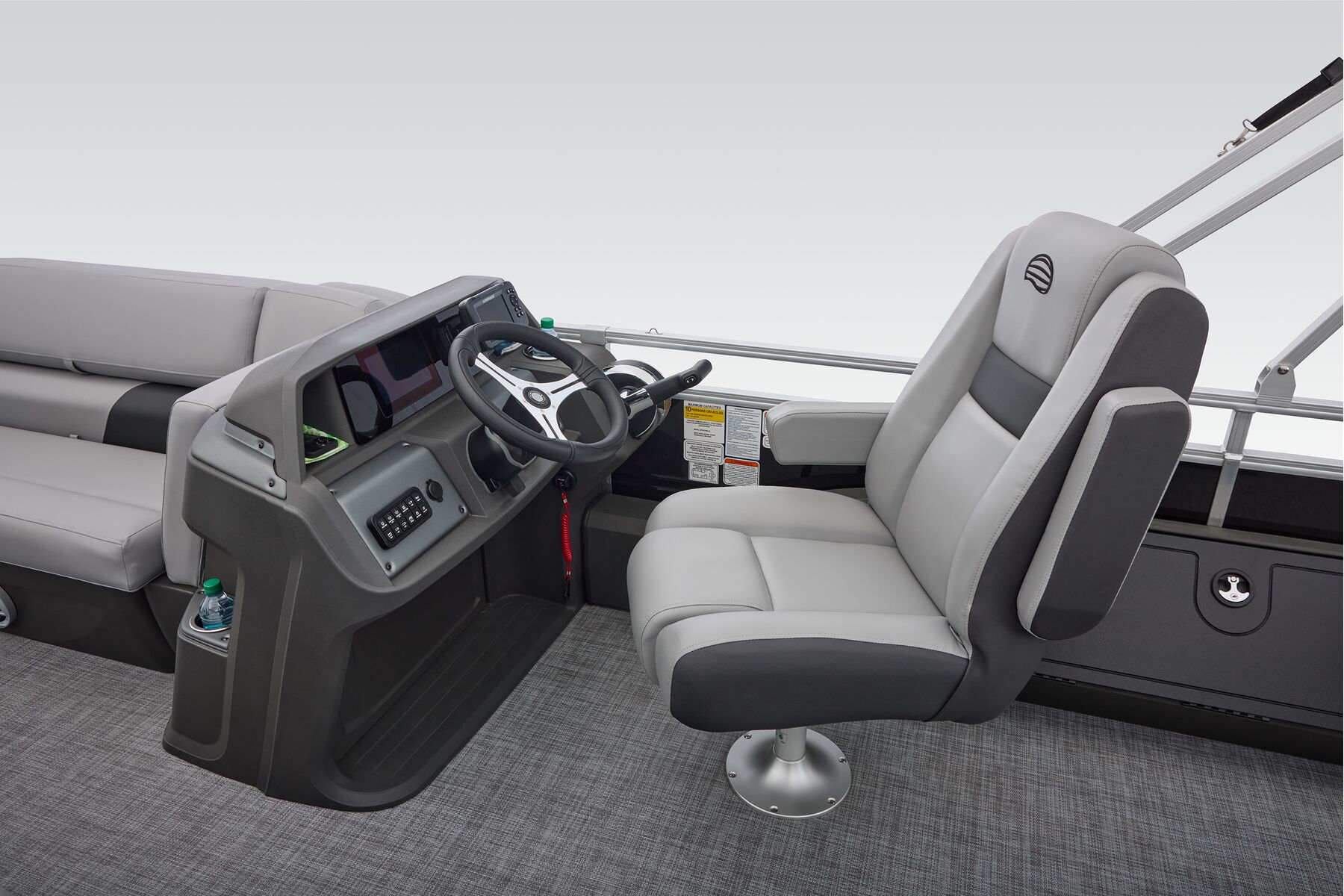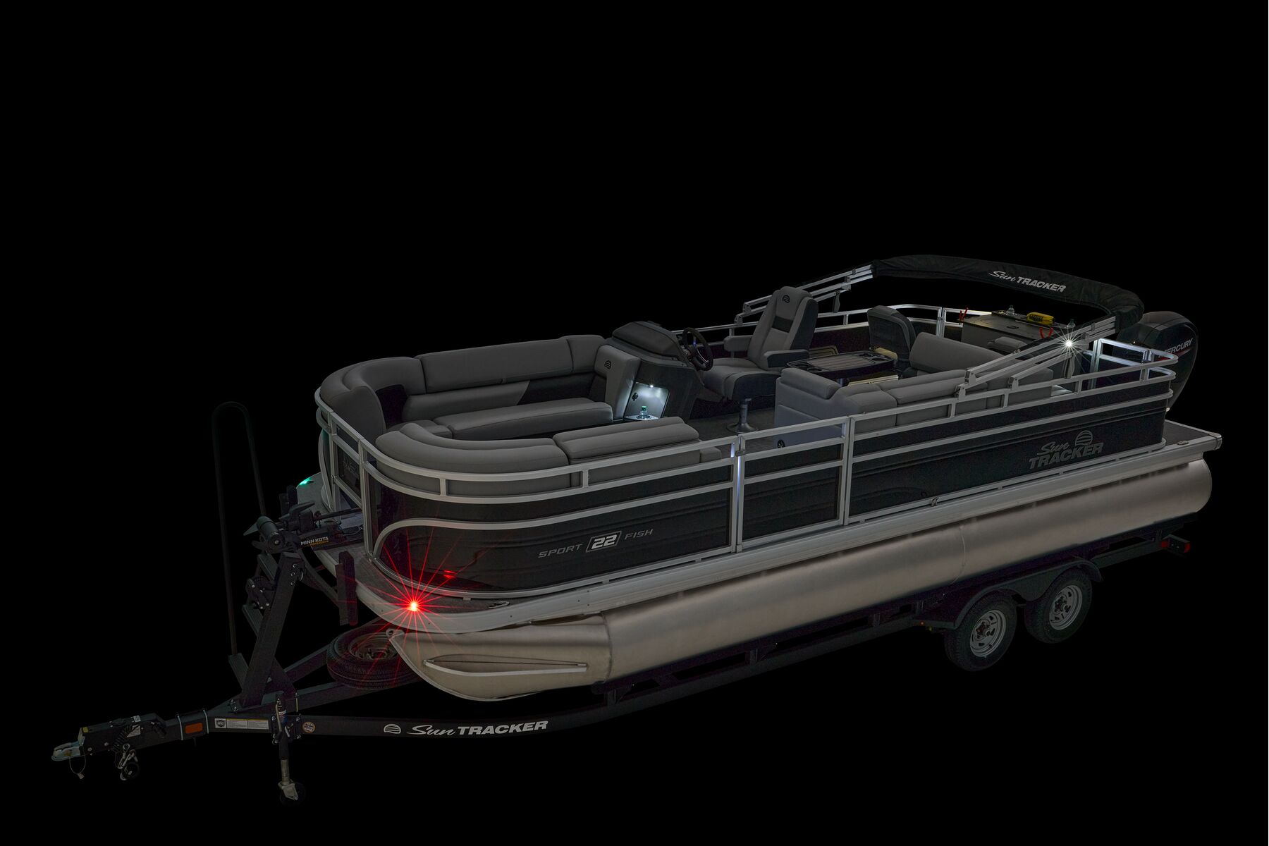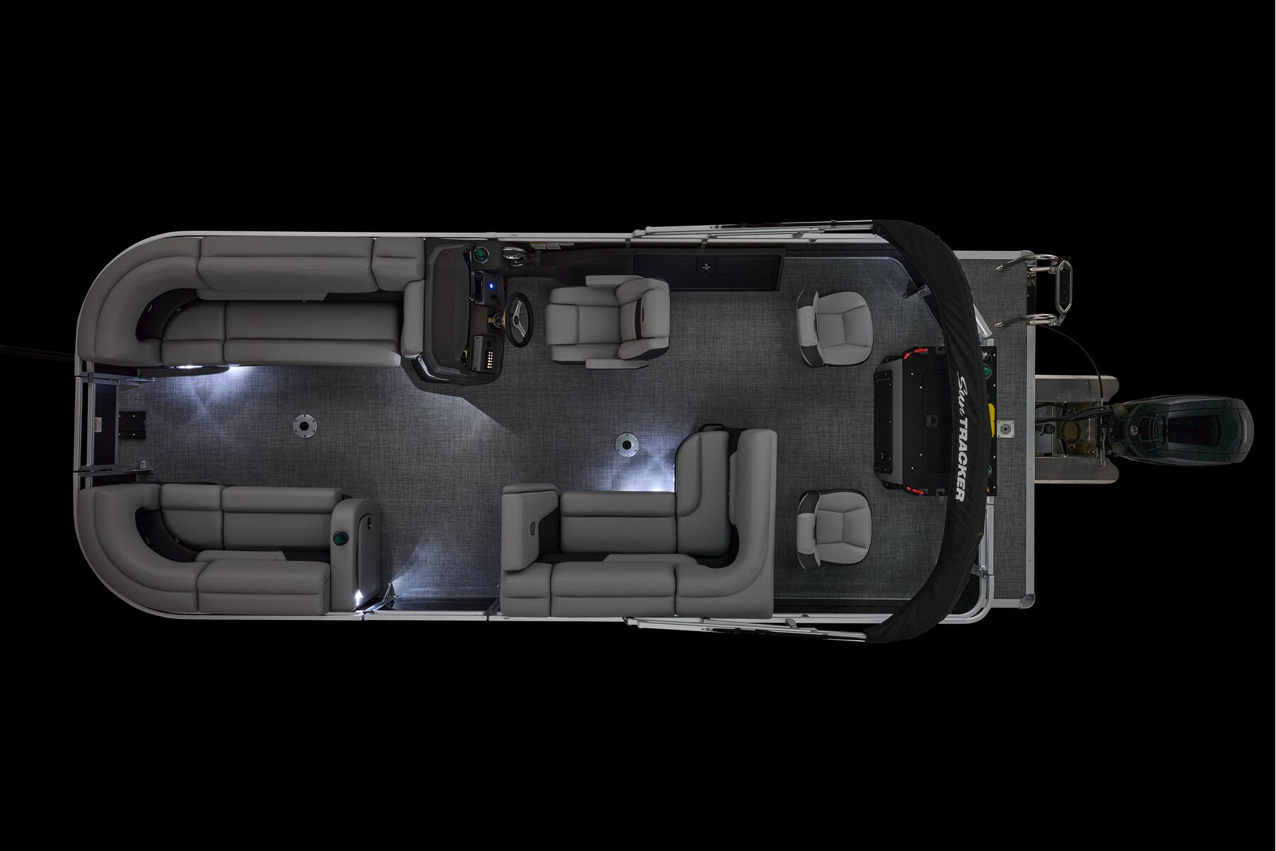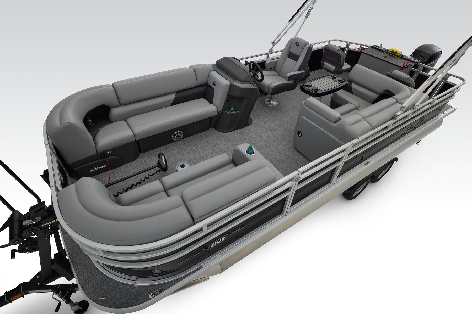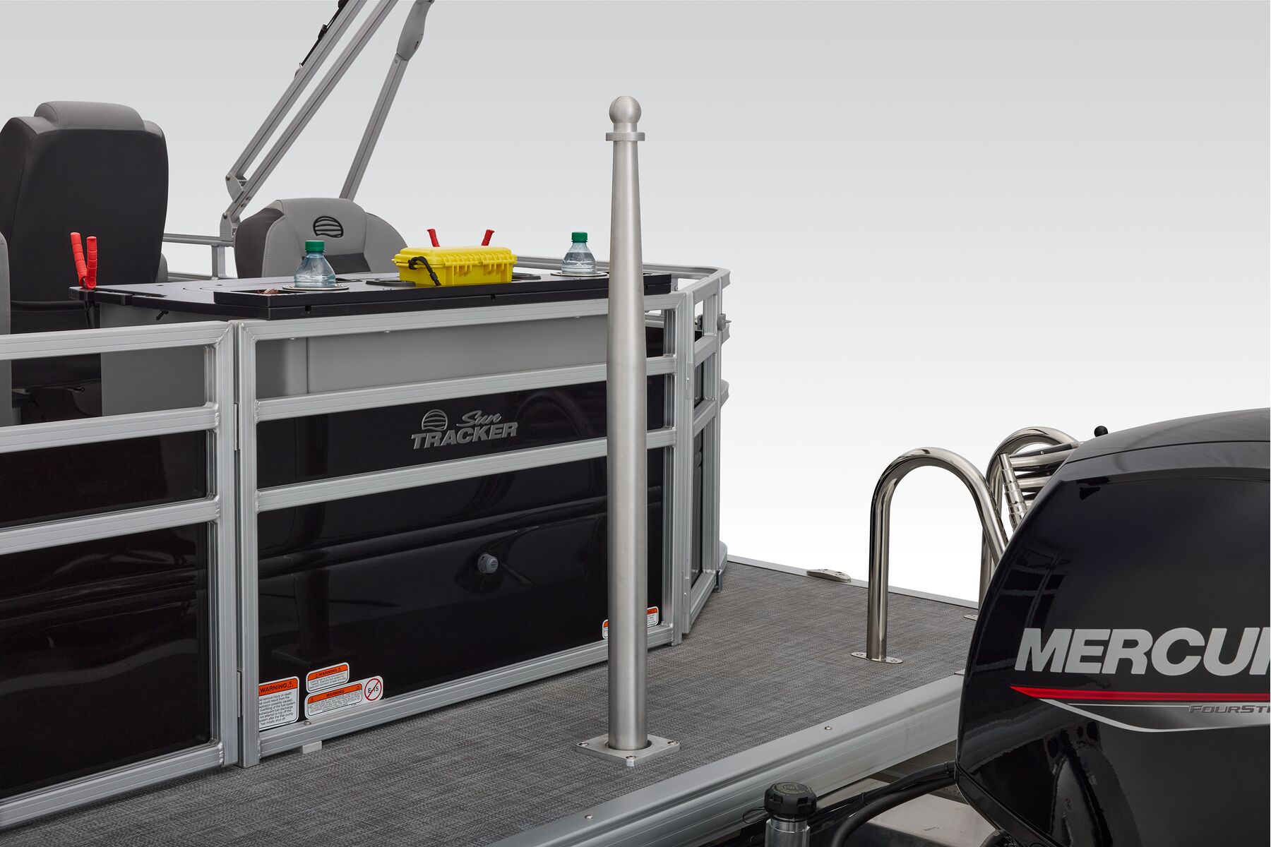 Note: SunTracker’s innovative new FLARE touchscreen gauge display relies on proprietary digital engine data not available from all engines. Boats equipped with optional Mercury 9.9ELPT FourStroke or 20ELPT FourStroke engines will experience limited monitoring capability. See dealer for details.