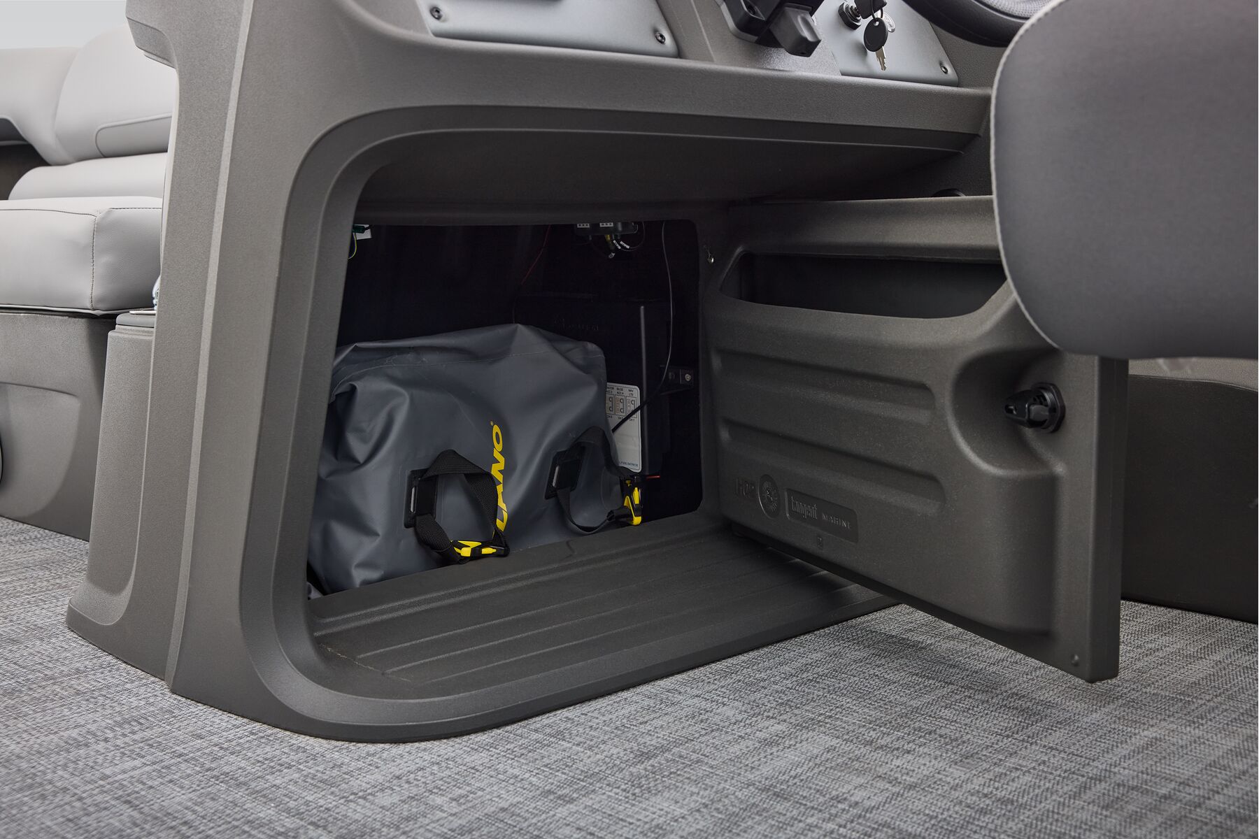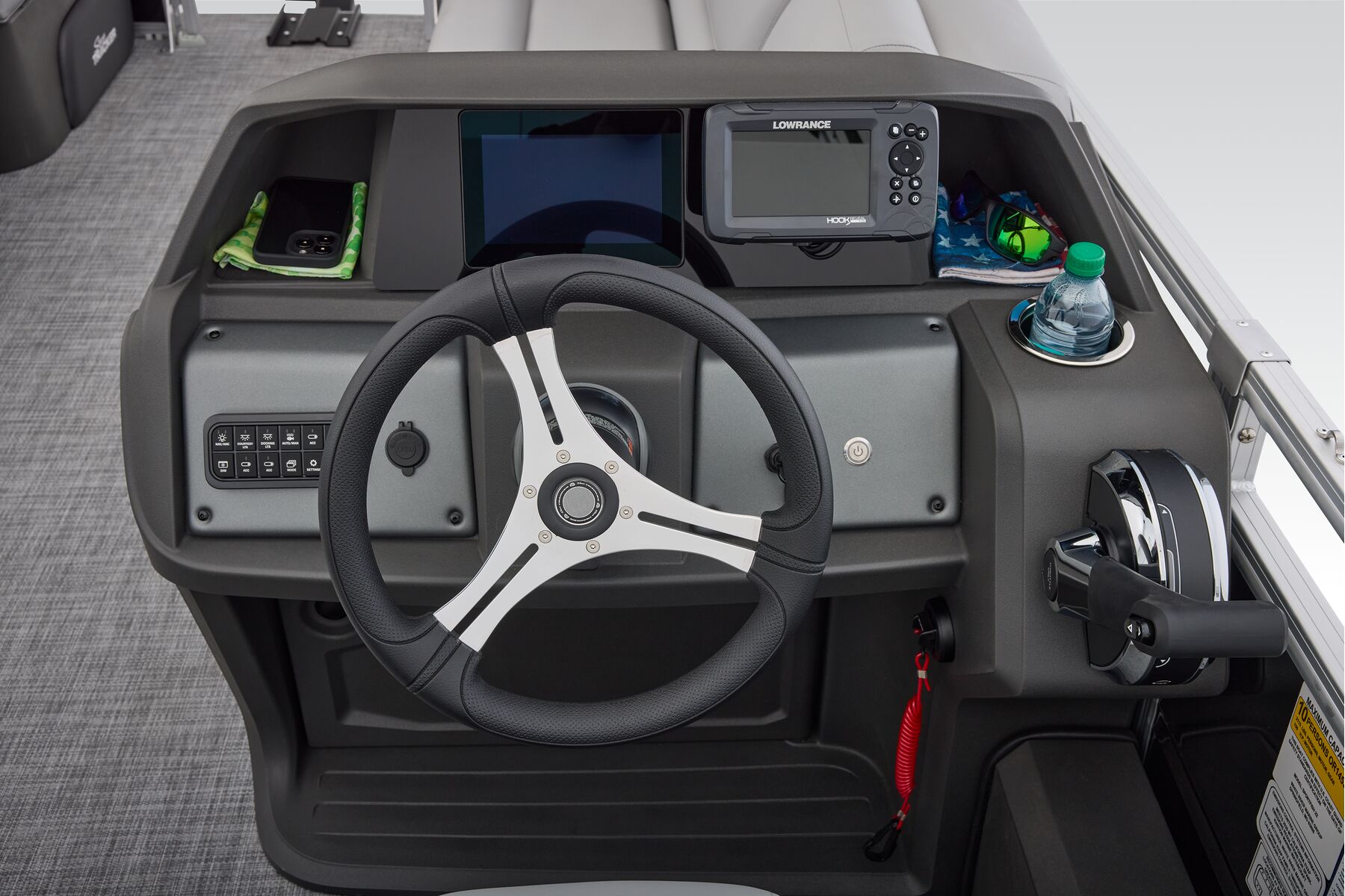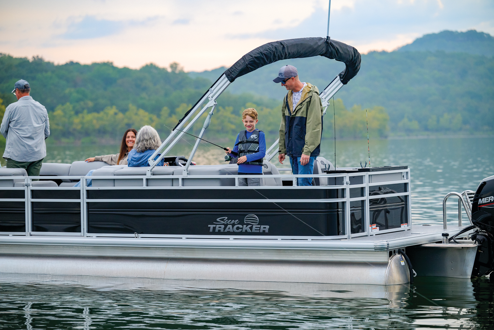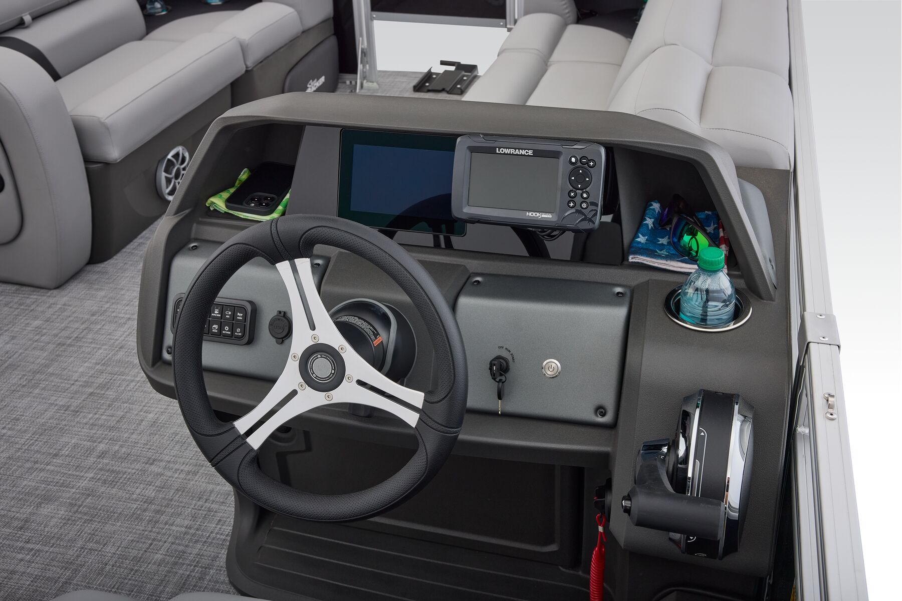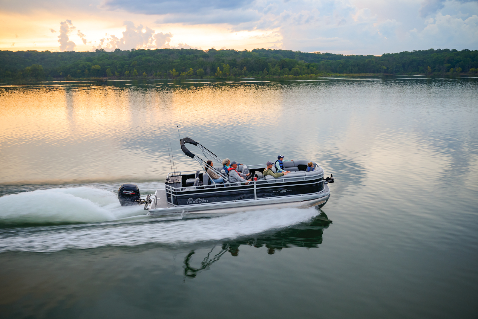 Note: SunTracker’s innovative new FLARE touchscreen gauge display relies on proprietary digital engine data not available from all engines. Boats equipped with optional Mercury 9.9ELPT FourStroke or 20ELPT FourStroke engines will experience limited monitoring capability. See dealer for details.