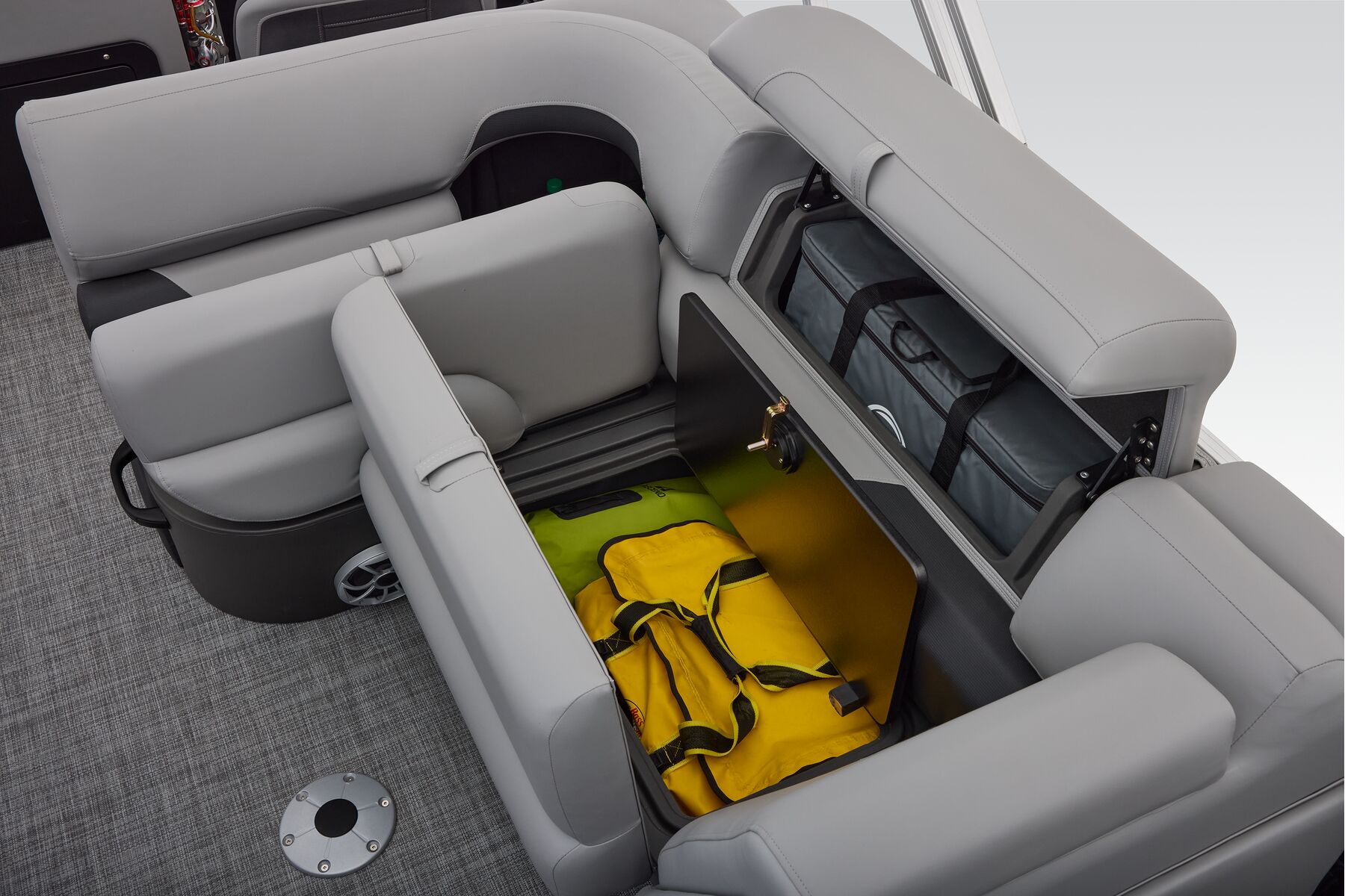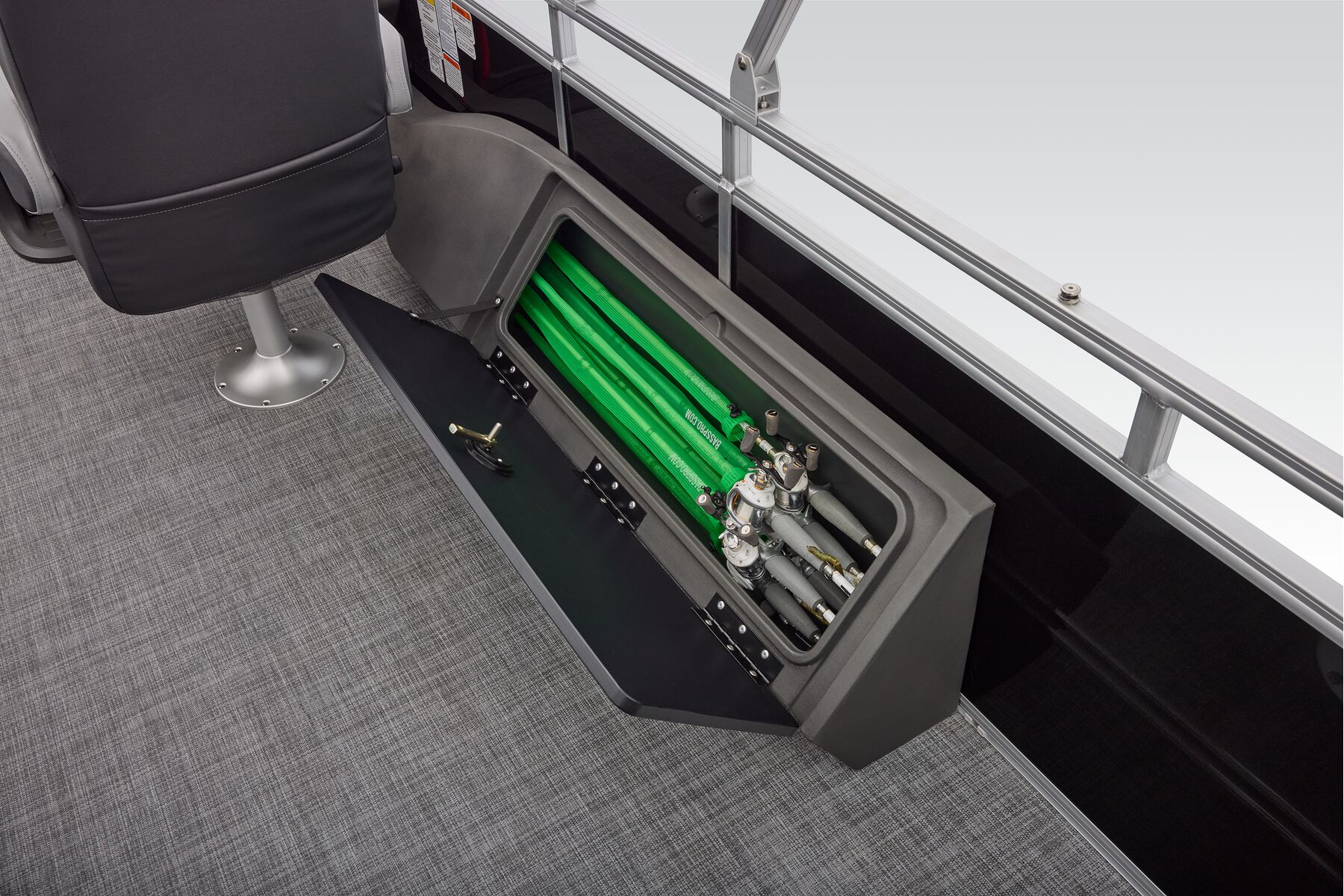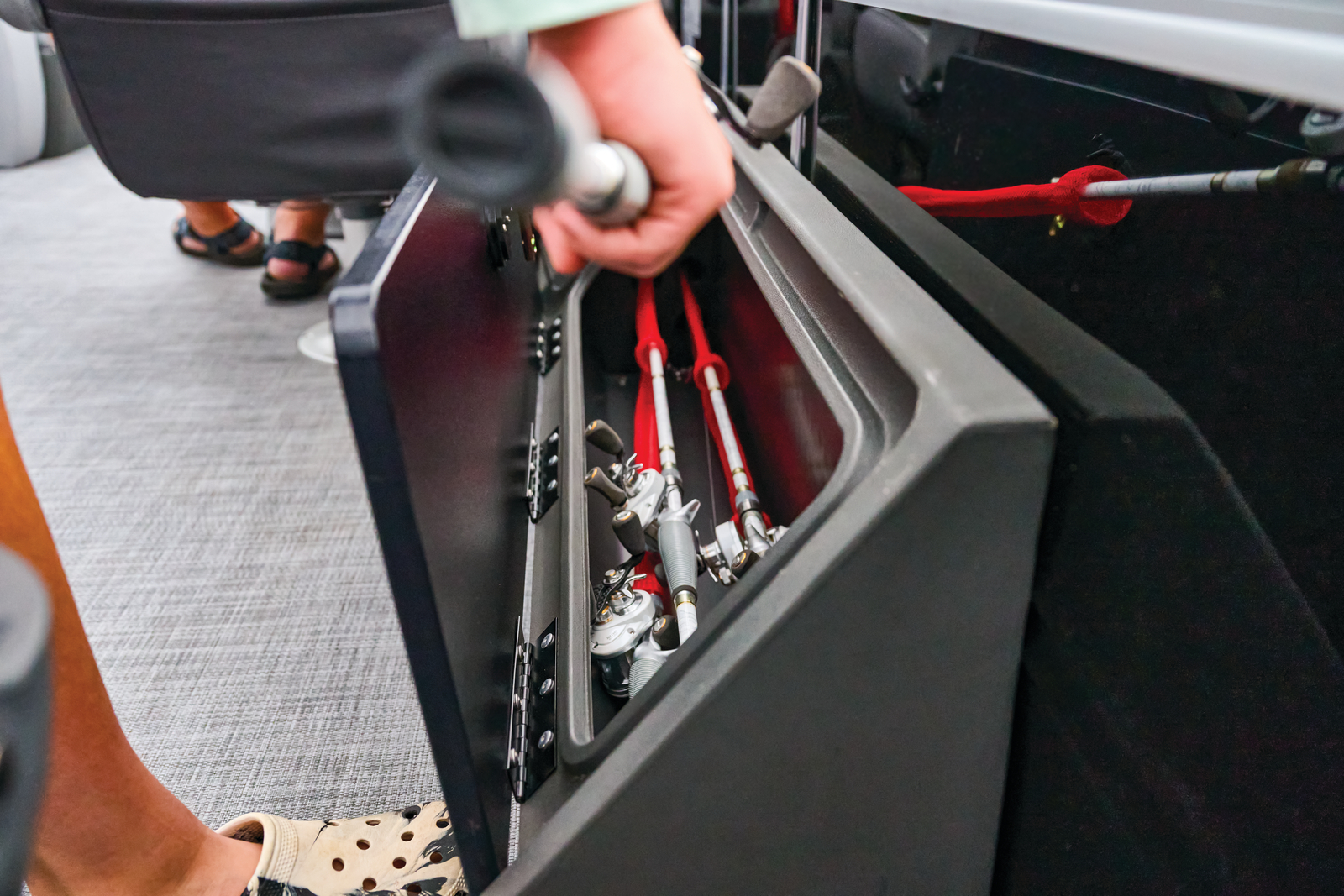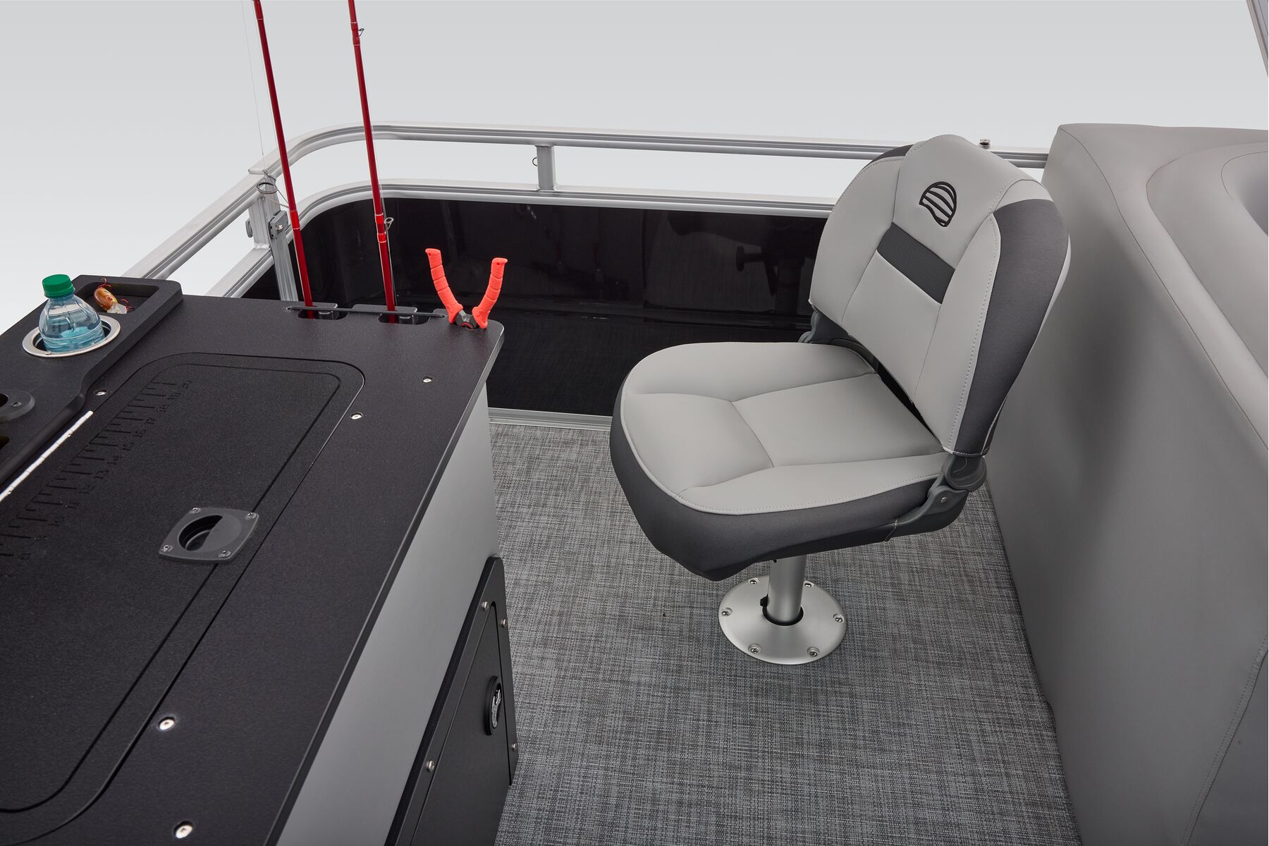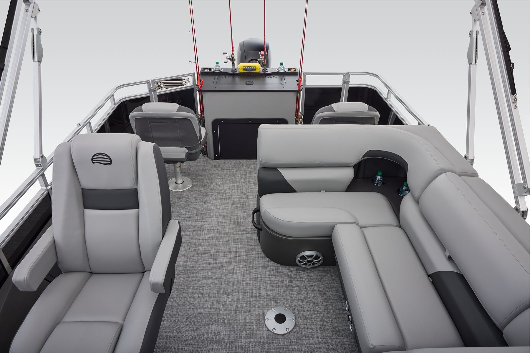 This is the fishing pontoon the whole family can enjoy. This SPORTFISH introduces a third lounge and pushes back the second casting chair to the aft casting deck. The 22 DLX also introduces a lockable rod box that can fit up to six rods. The 2026 model year brings some fine-tuned changes, including a wider boarding ladder, open storage spaces with cupholders built into the seatbacks, and more.