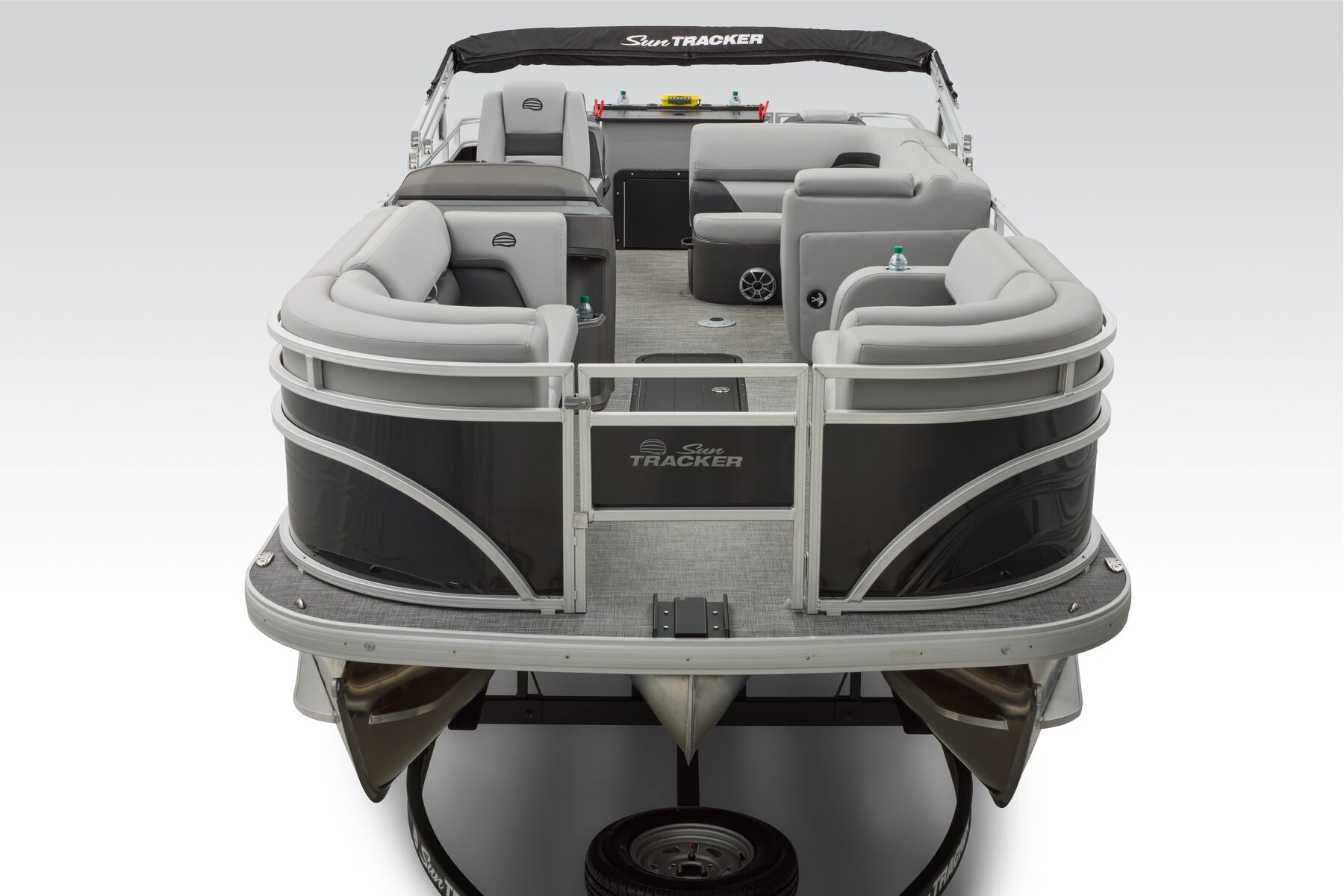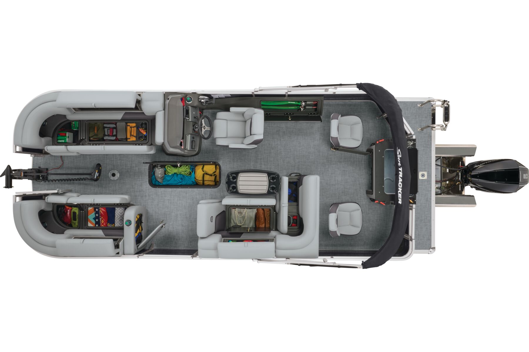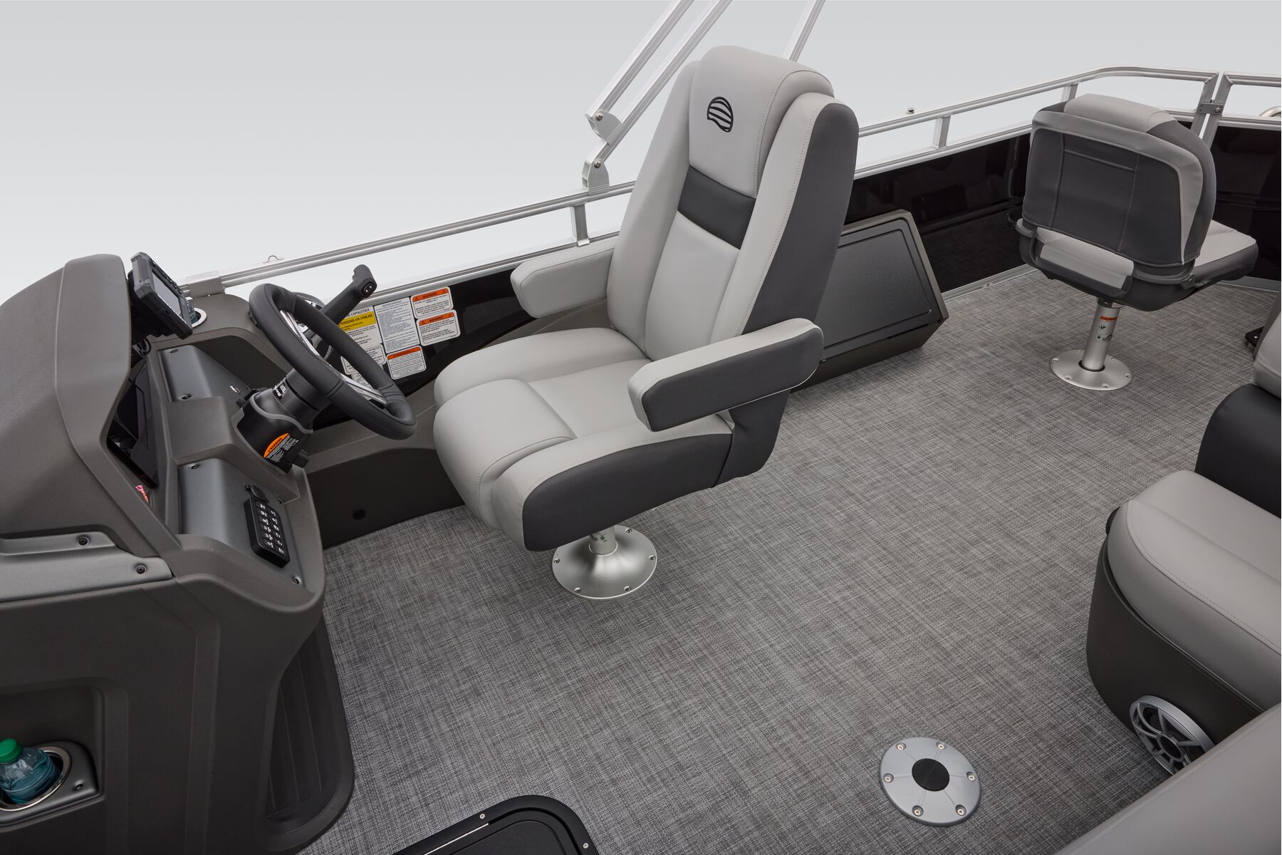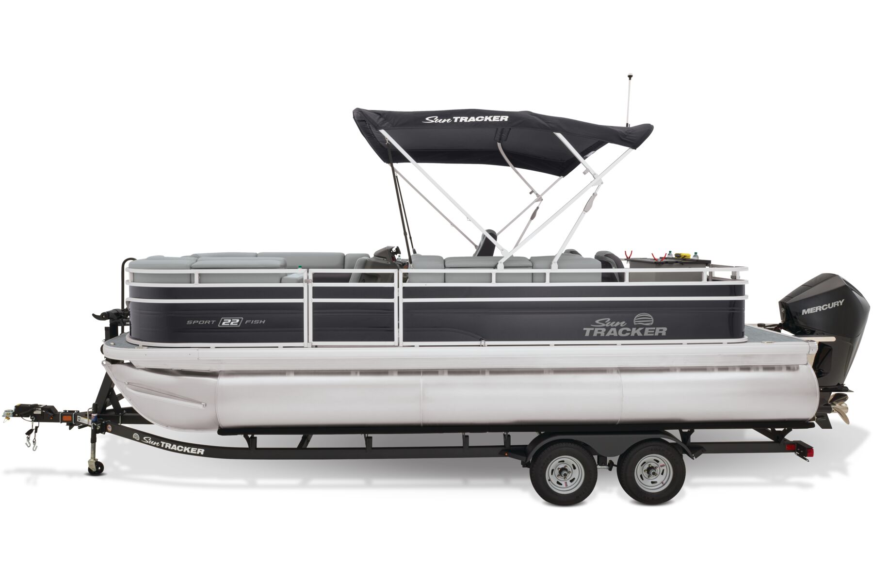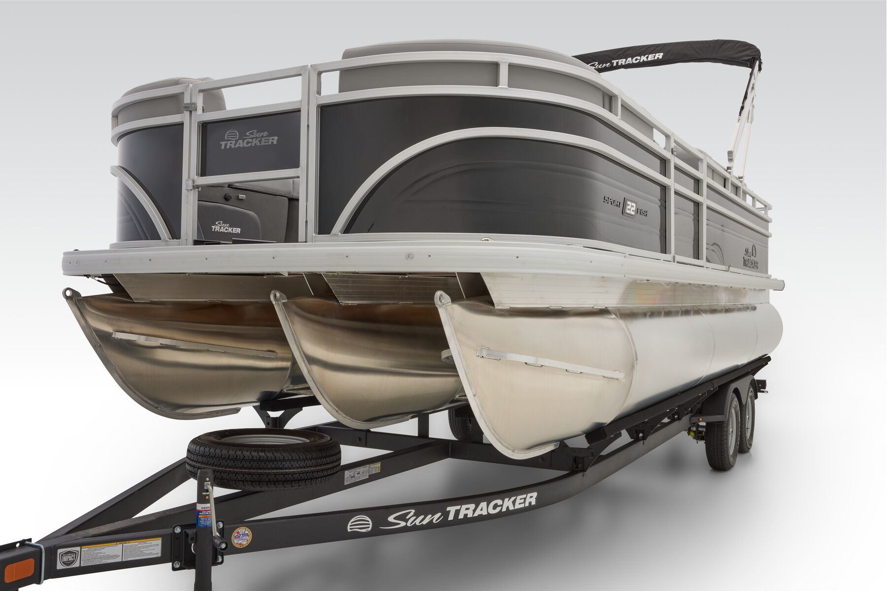 Ramp into the fishing tritoon world with the fully loaded SUN TRACKER® SPORTFISH™ 22 XP3. The difference between the SPORTFISH 22 XP3 and its sibling—the DLX—is that it uses a third pontoon log with lifting strakes to increase the boat’s maximum strength and stability.