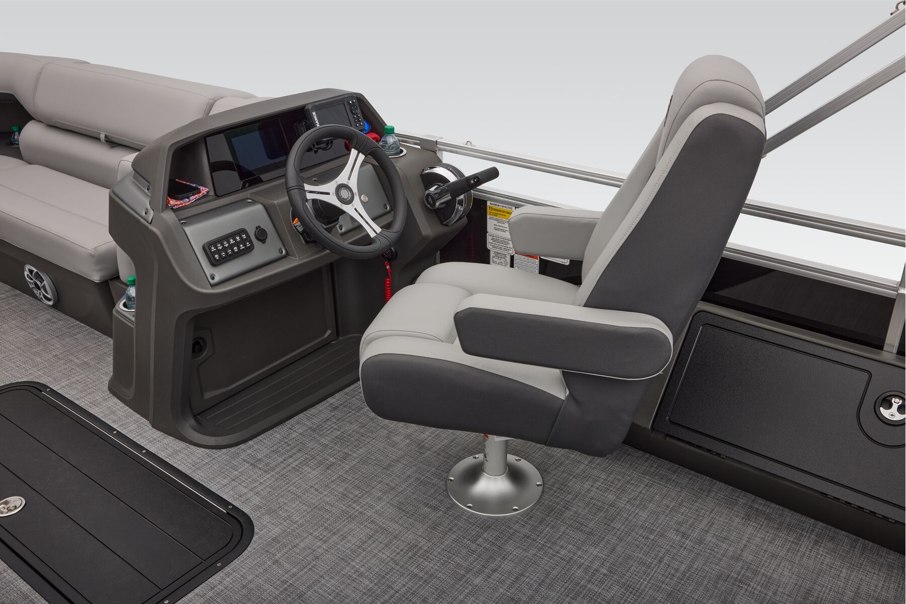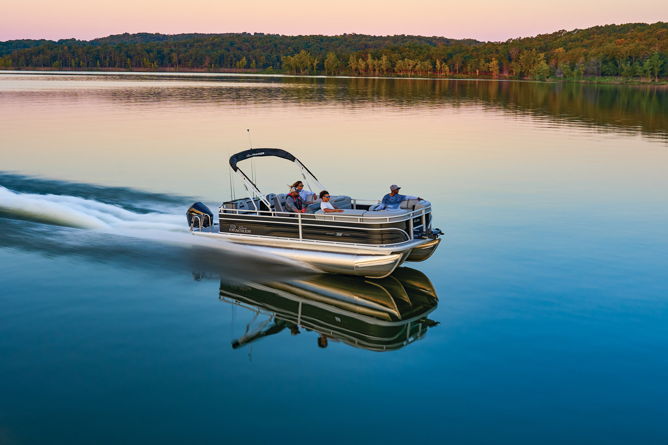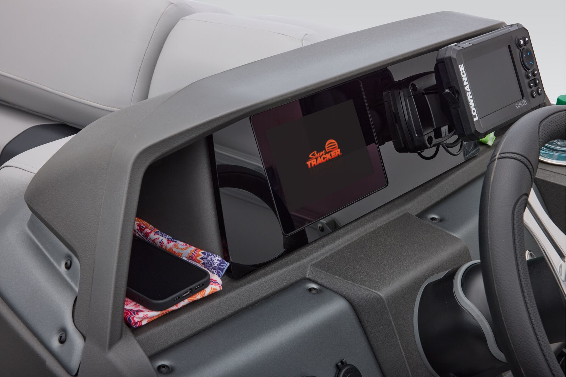 Note: SunTracker’s innovative new FLARE touchscreen gauge display relies on proprietary digital engine data not available from all engines. Boats equipped with optional Mercury 9.9ELPT FourStroke or 20ELPT FourStroke engines will experience limited monitoring capability. See dealer for details.