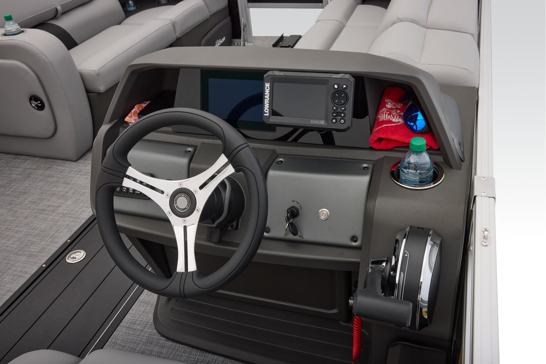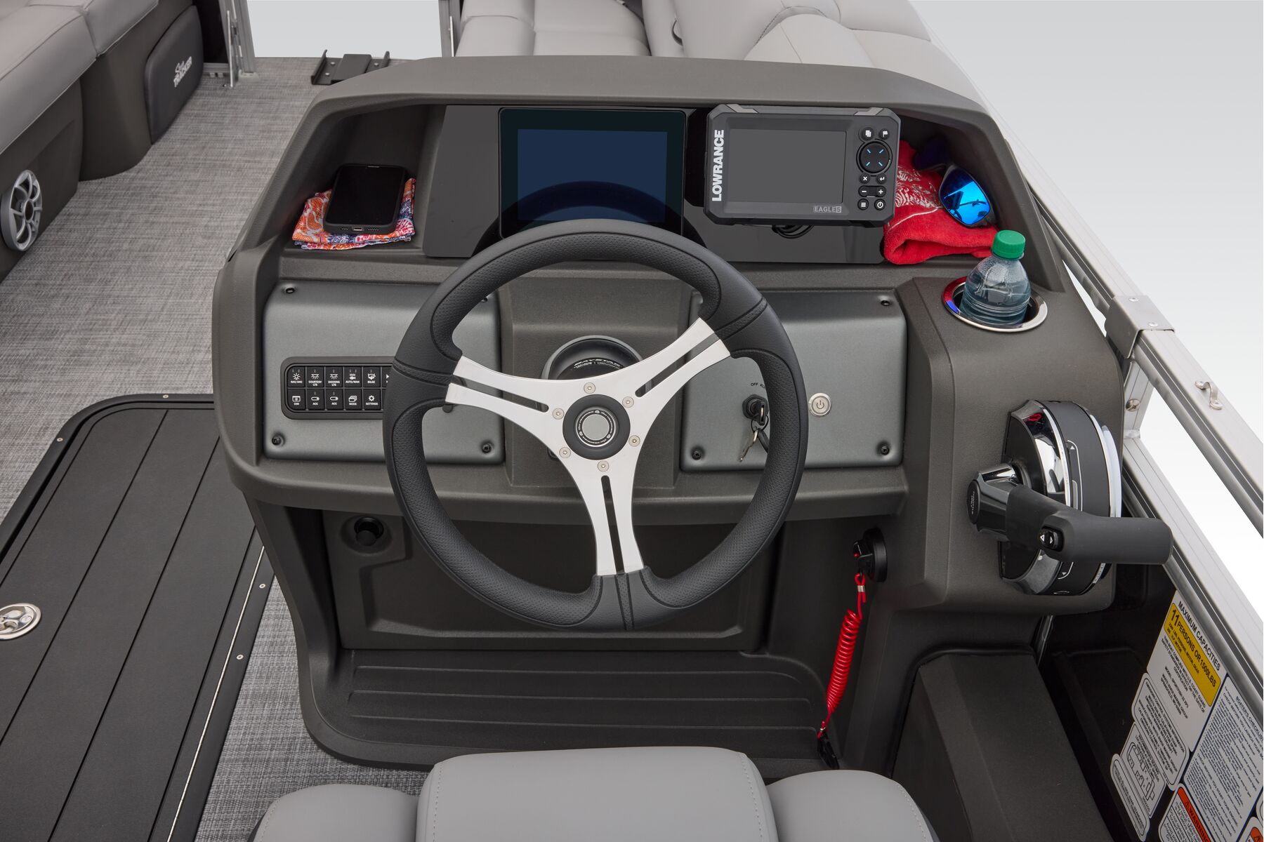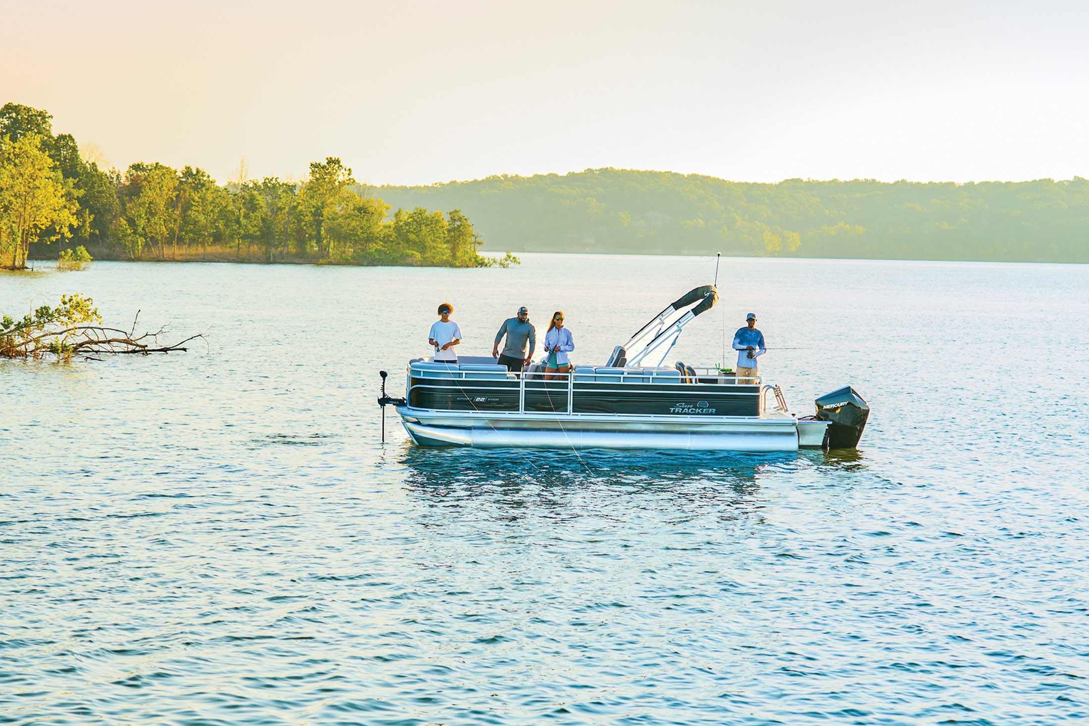 The SPORTFISH 22 XP3's greater stability and strength from its third log—as well as the standard array of fishing features—allows this pontoon to command the lake.