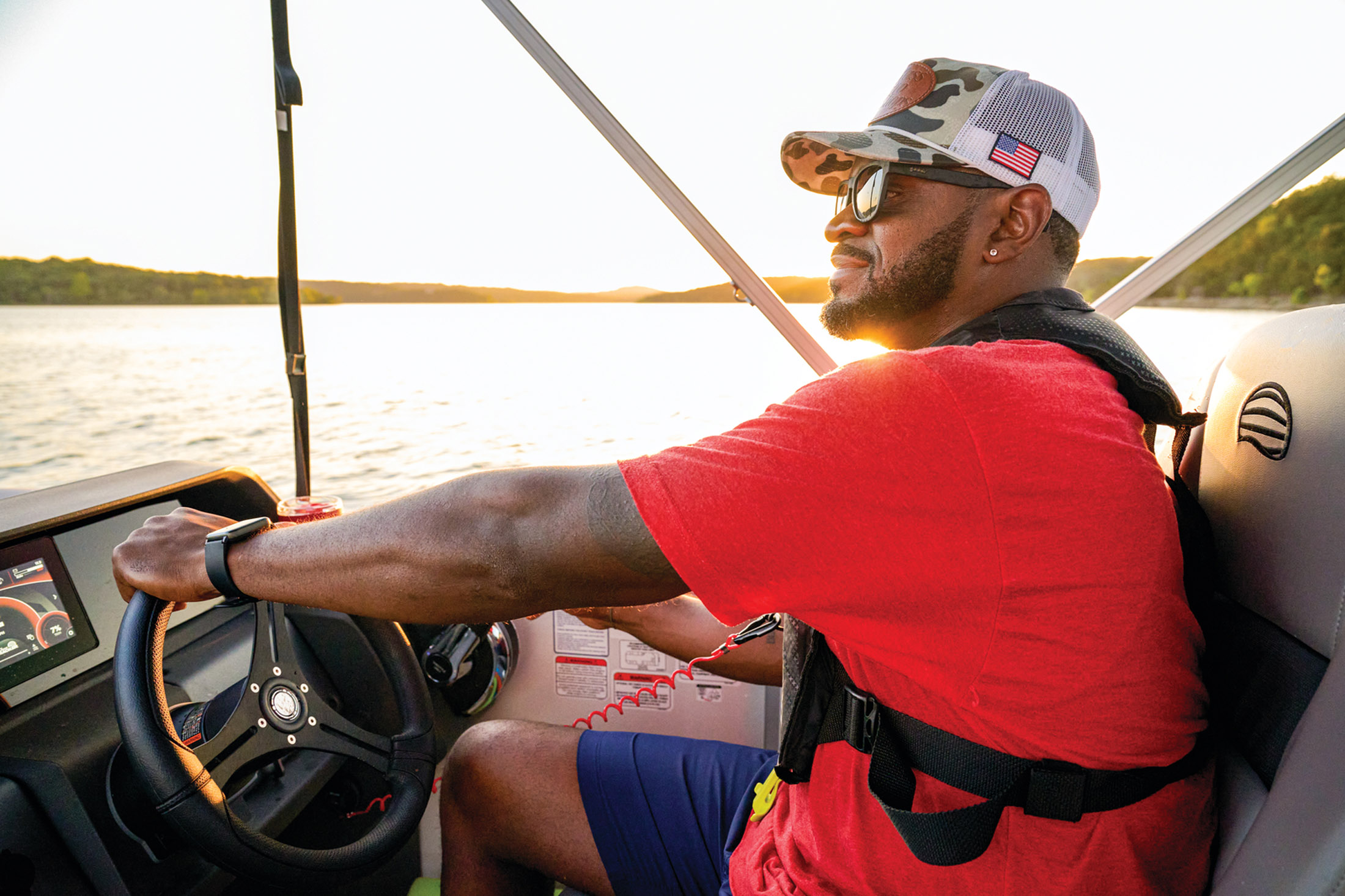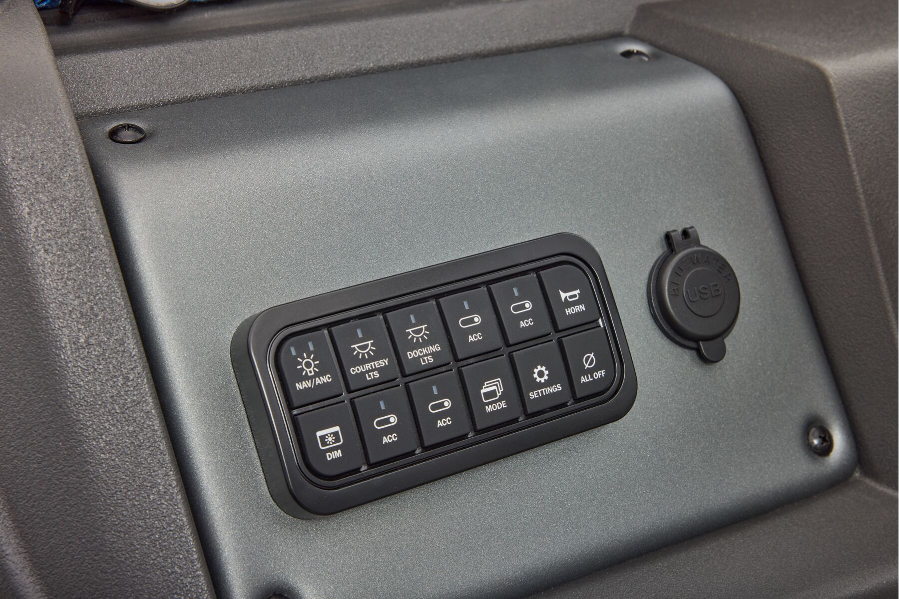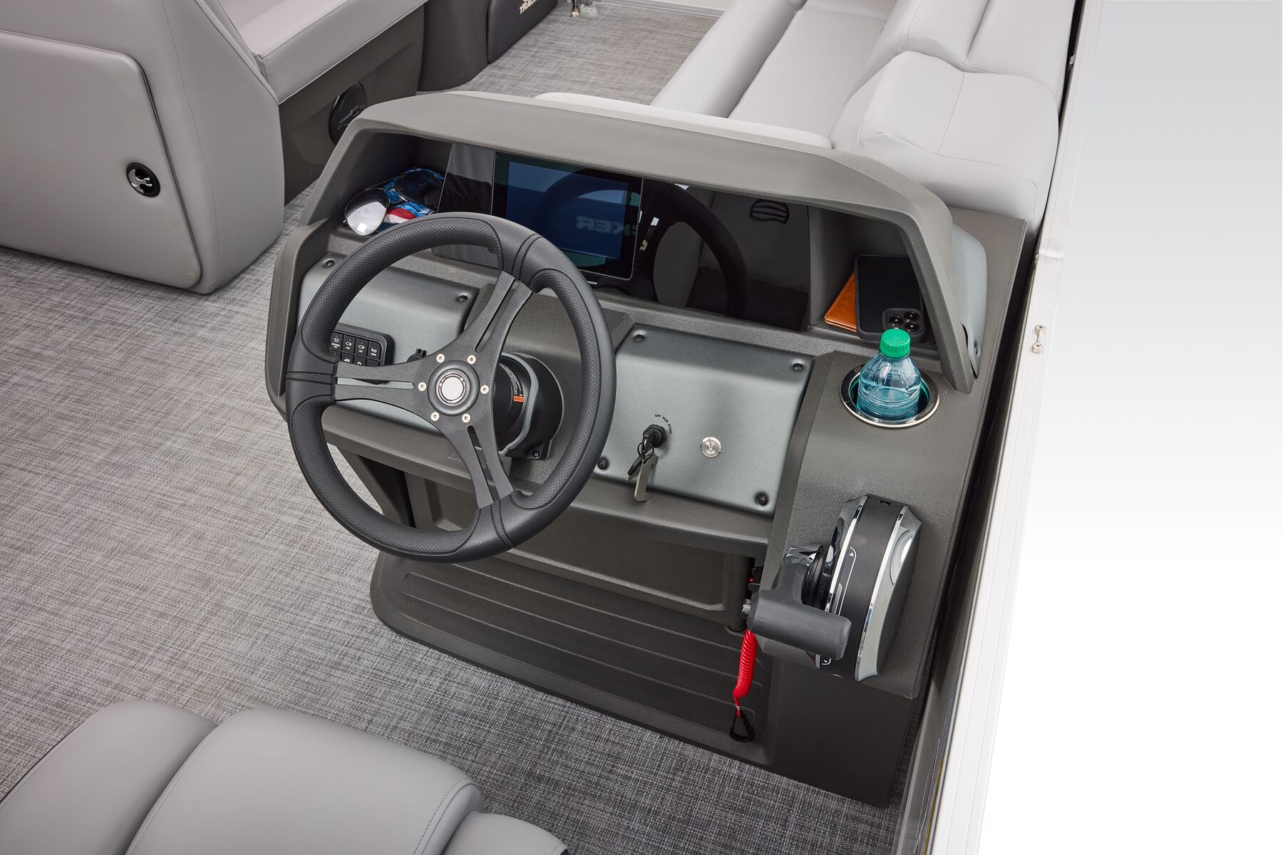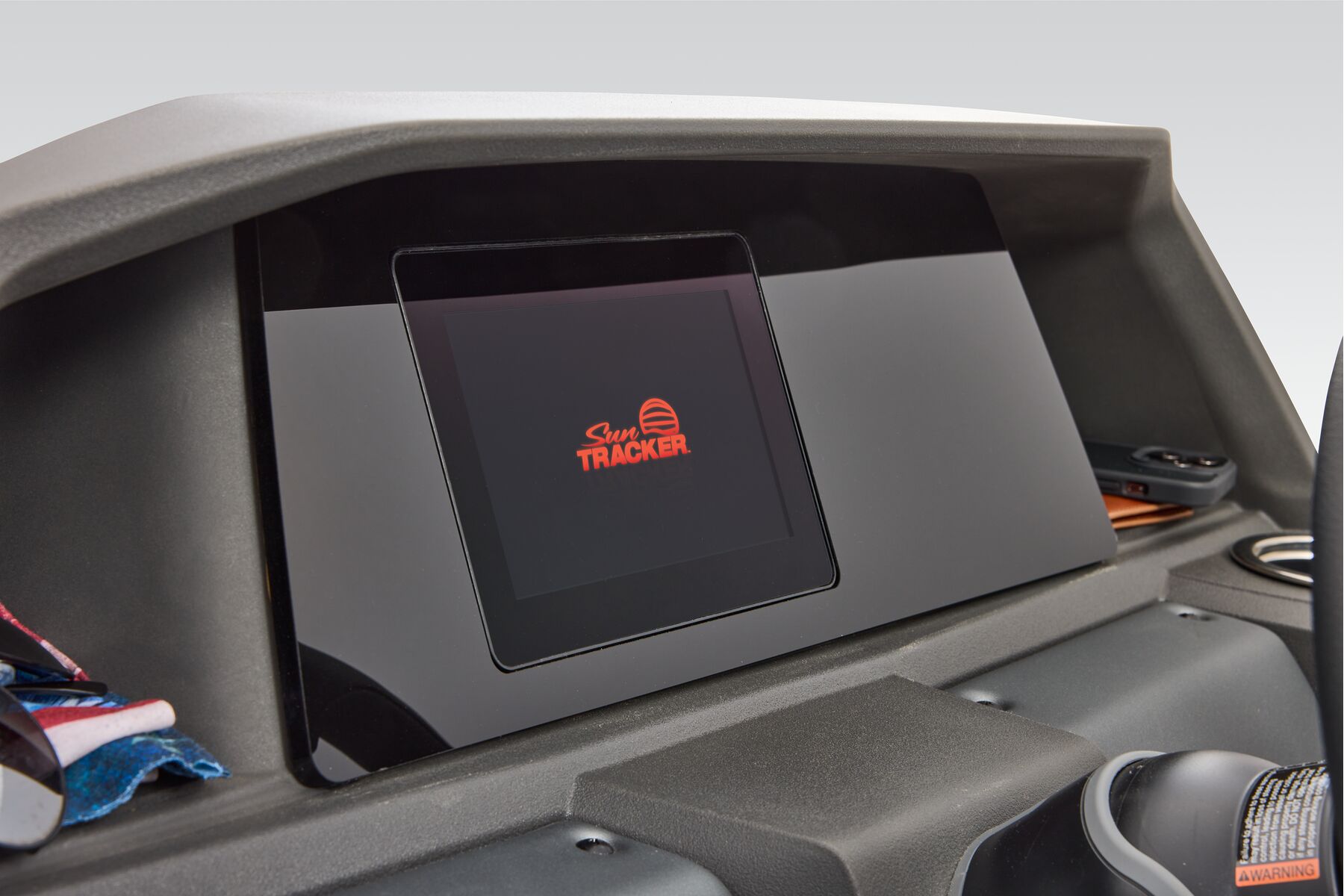 Note: SunTracker’s innovative new FLARE touchscreen gauge display relies on proprietary digital engine data not available from all engines. Boats equipped with optional Mercury 9.9ELPT FourStroke or 20ELPT FourStroke engines will experience limited monitoring capability. See dealer for details.