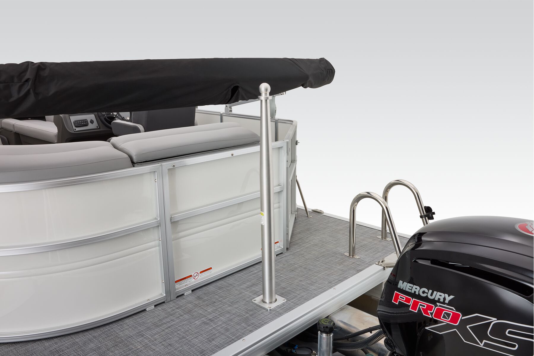 Increased horsepower and a standard ski-tow pylon anchor point make this model a better fit for watersports enthusiasts. The wider boarding ladder makes it easier to get back onboard.