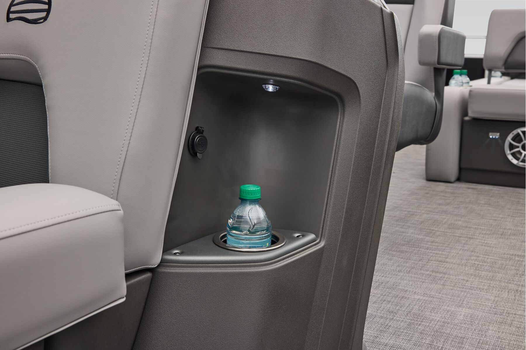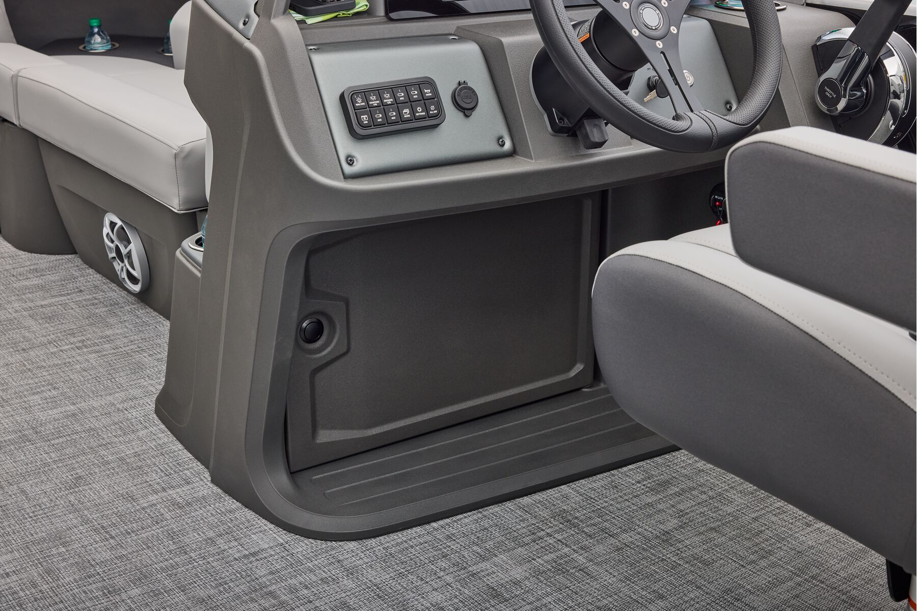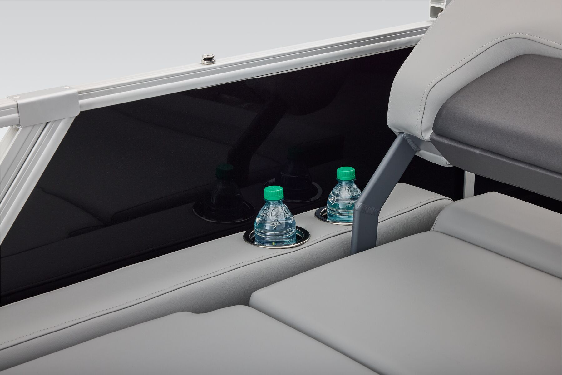 The 2026 model year gives you a new interior with new premium flooring, colorful upholstery accents that match your fencing colors, and a brand-new driver console design. The lounges get a functional upgrade in the corner backrest storage cubbies that can fit large bottles and extra supplies. Cannonballers will have an easier time getting into the boat with the wider ergonomic ladder.