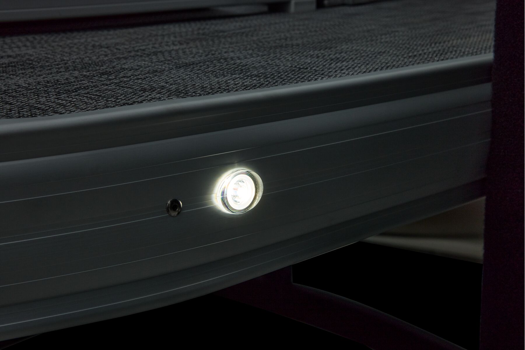 NEW aft port, 3-position switchback double lounge with STOW MORE™ lockable storage.