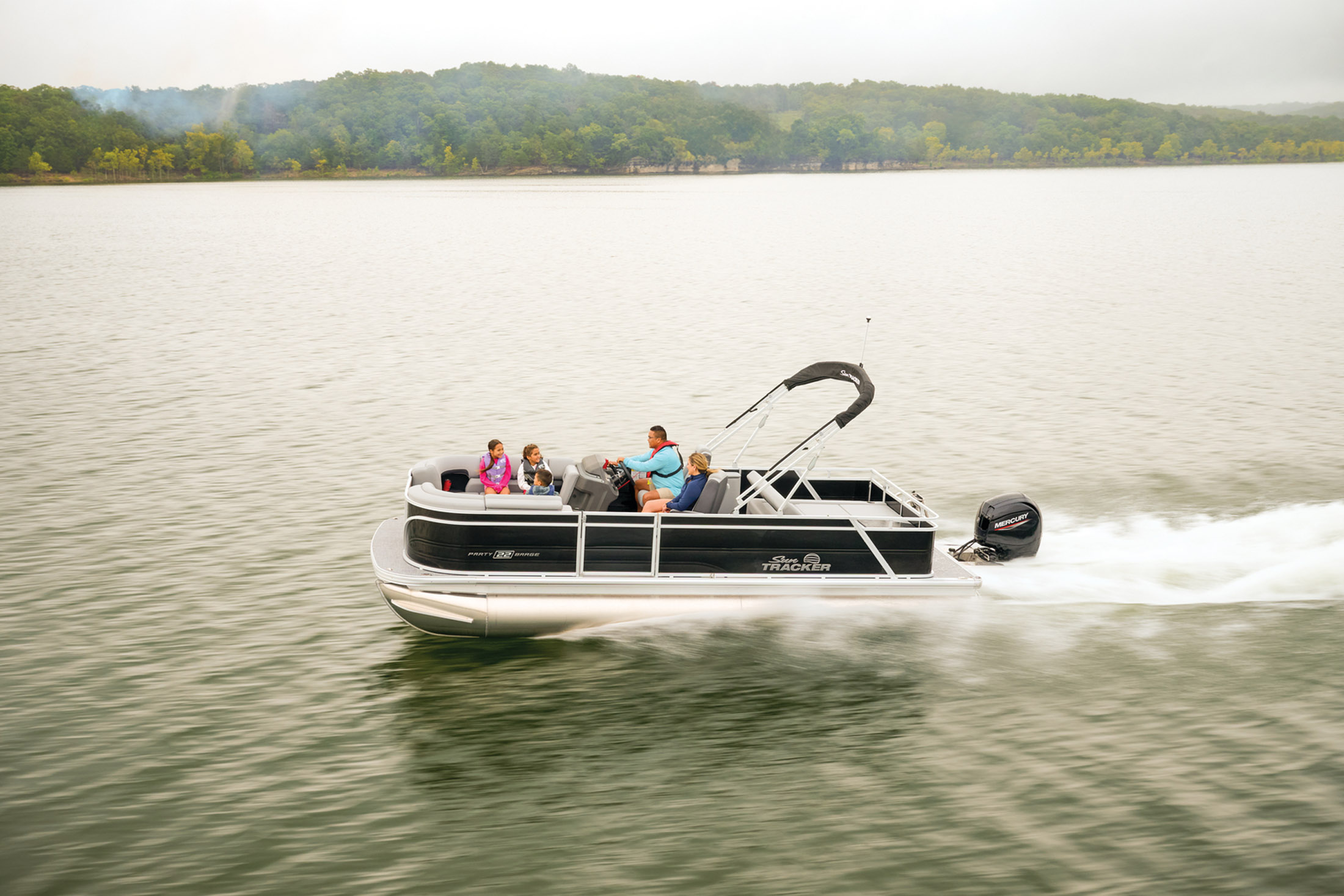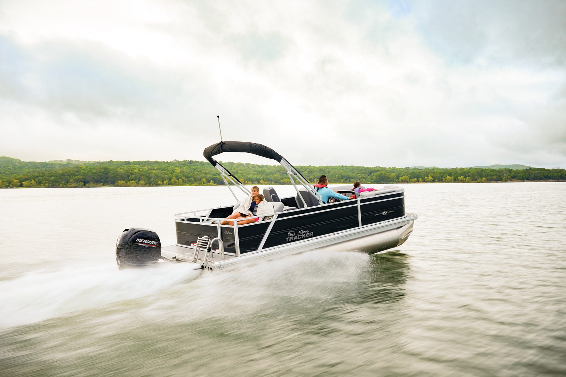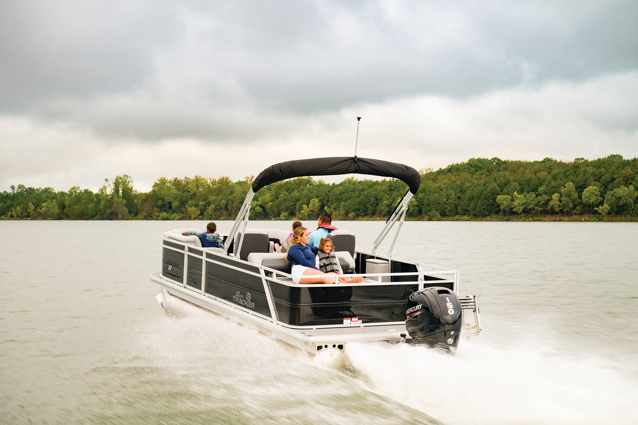 Note: SunTracker’s innovative new FLARE touchscreen gauge display relies on proprietary digital engine data not available from all engines. Boats equipped with optional Mercury 9.9ELPT FourStroke or 20ELPT FourStroke engines will experience limited monitoring capability. See dealer for details.