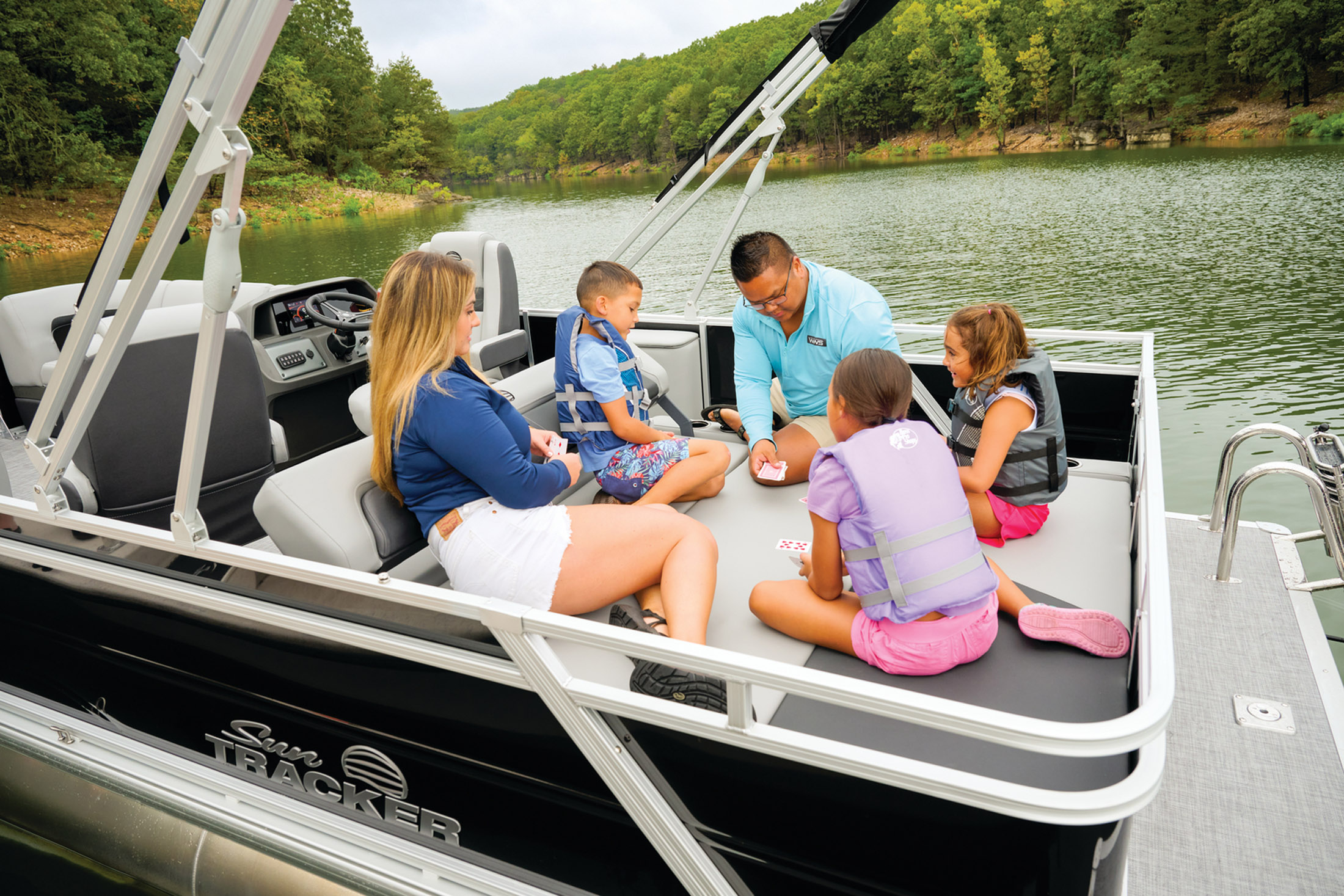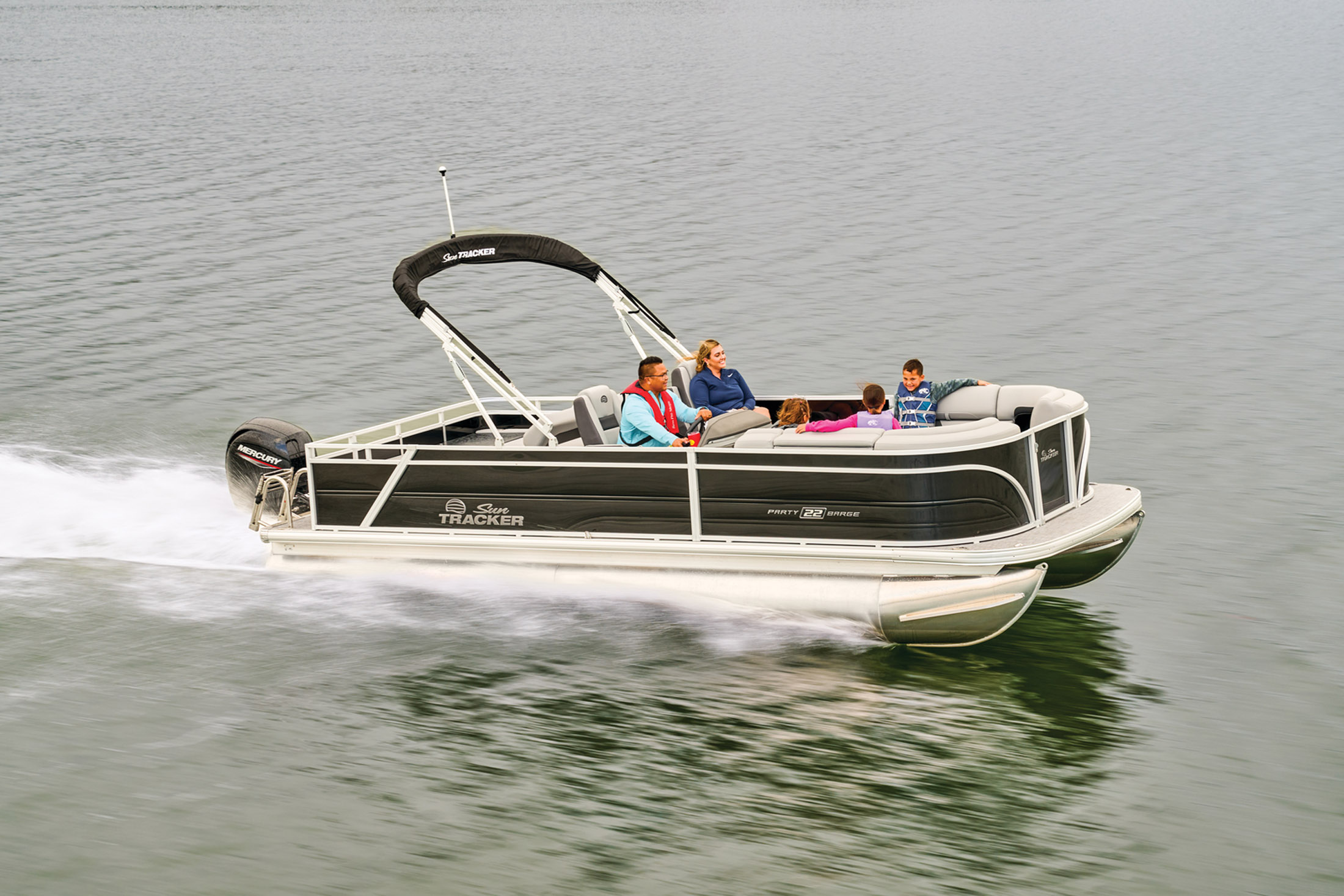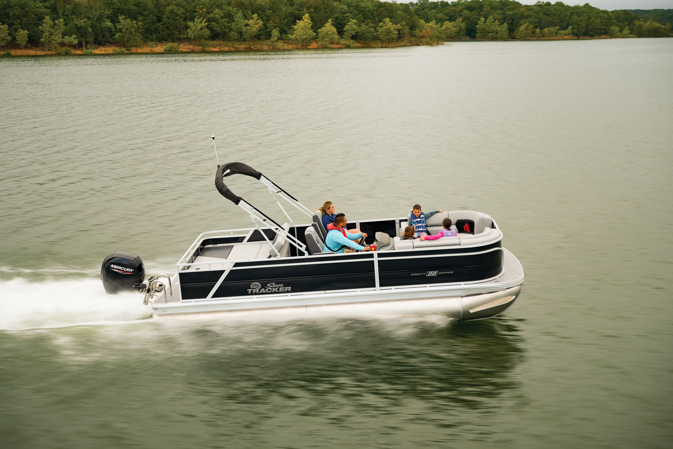 Note: SunTracker’s innovative new FLARE touchscreen gauge display relies on proprietary digital engine data not available from all engines. Boats equipped with optional Mercury 9.9ELPT FourStroke or 20ELPT FourStroke engines will experience limited monitoring capability. See dealer for details.