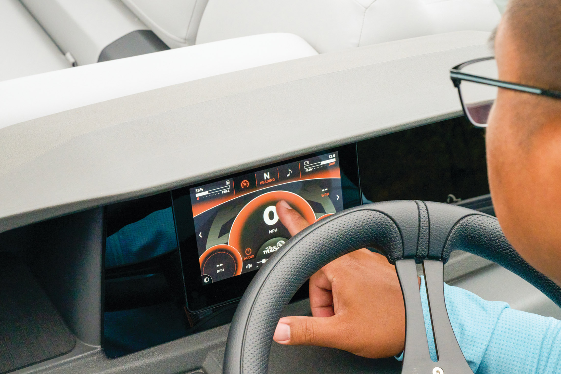 SUN TRACKER FLARE™ touchscreen gauge display with NEW integrated GPS & NEW stereo control.