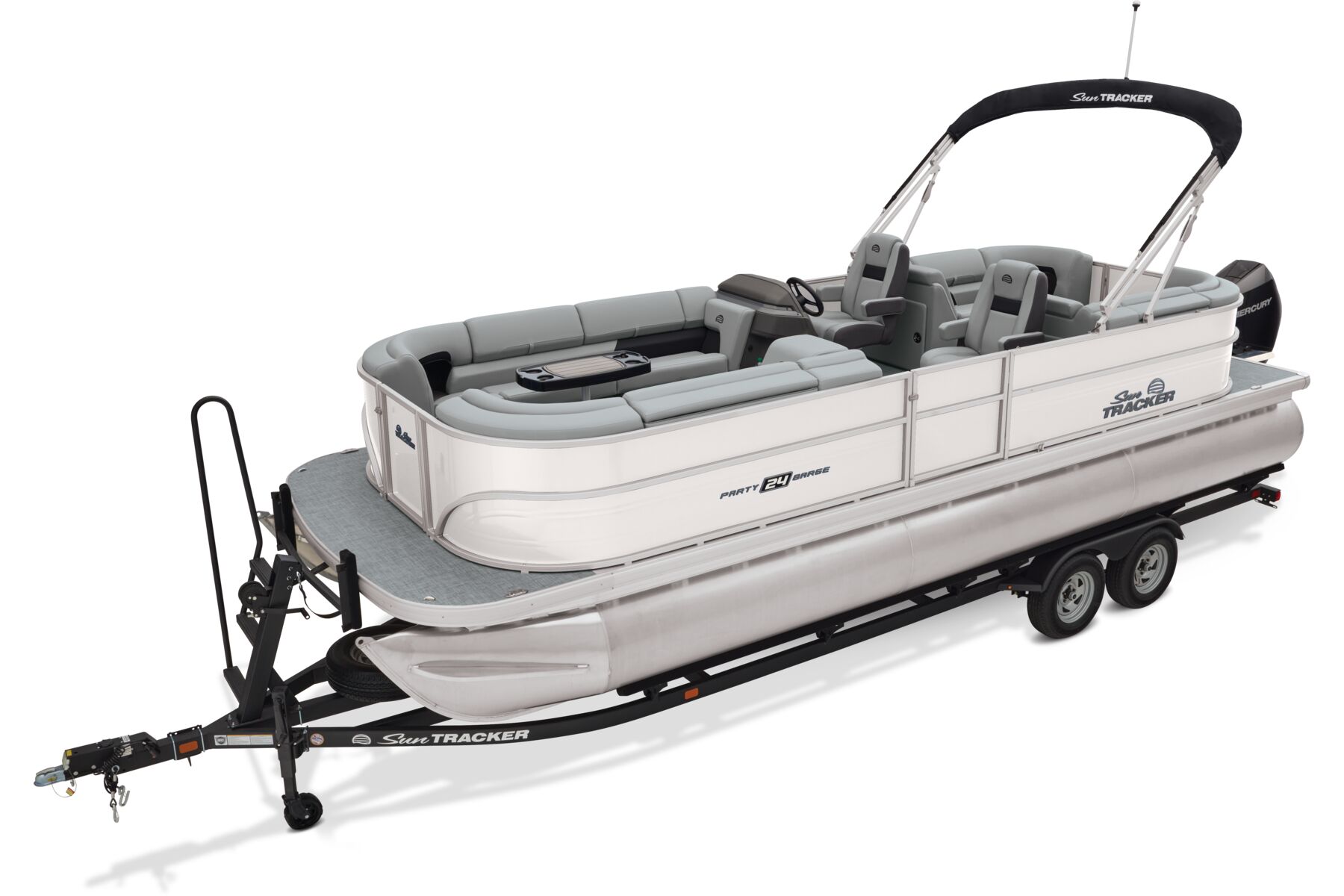 The PARTY BARGE® 24 XP3 is the biggest pontoon in the SUN TRACKER® family. The 24' deck lets up to 12 passengers embark on aquatic adventures they'll never forget.