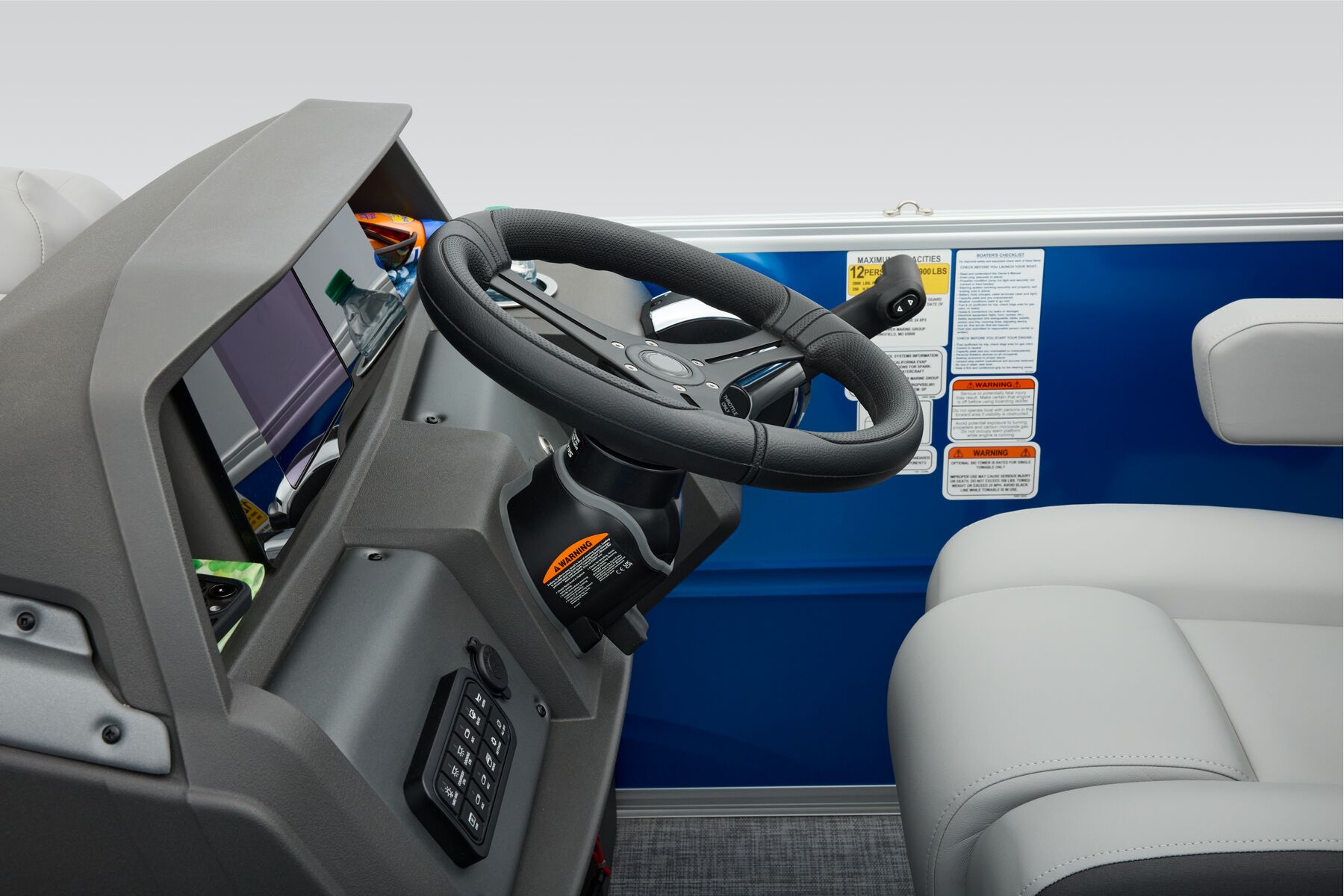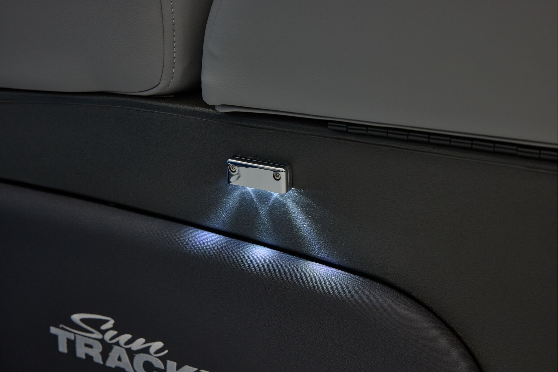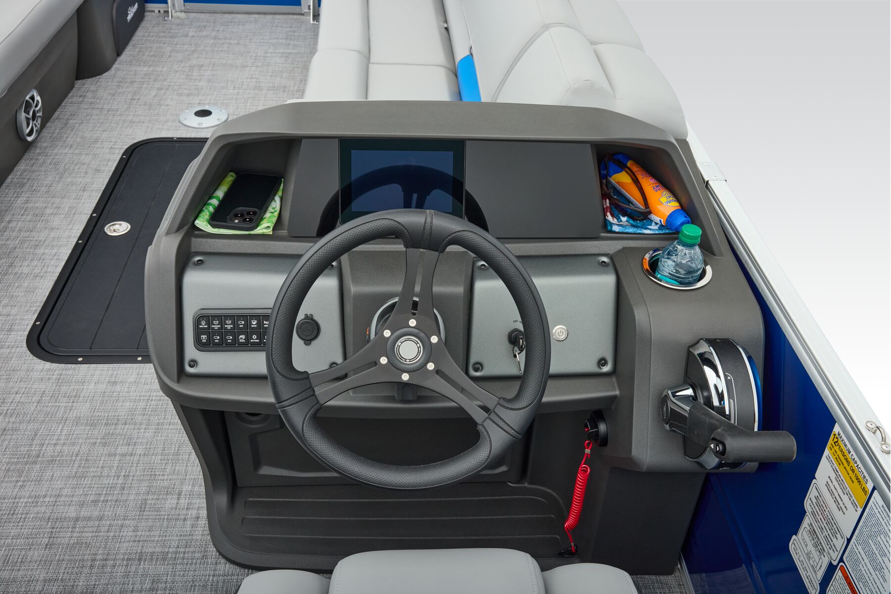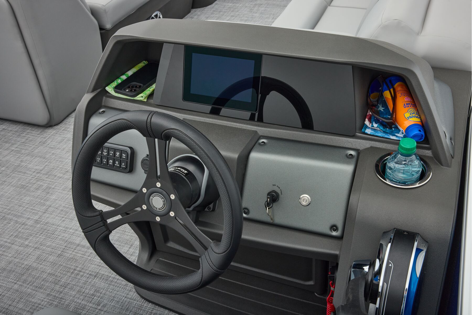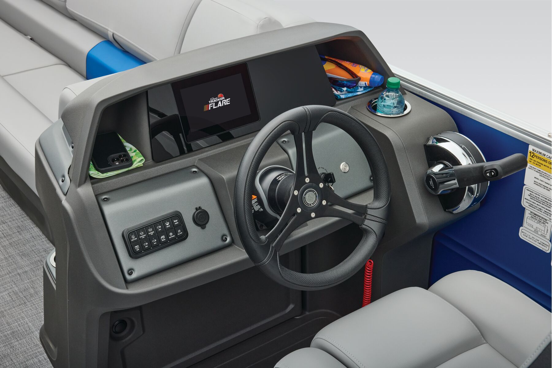 The captain can control everything through the completely redesigned console's new SUN TRACKER FLARE™ touch-screen gauge display with an improved GPS system and upgraded four-speaker Bluetooth®-capable stereo.