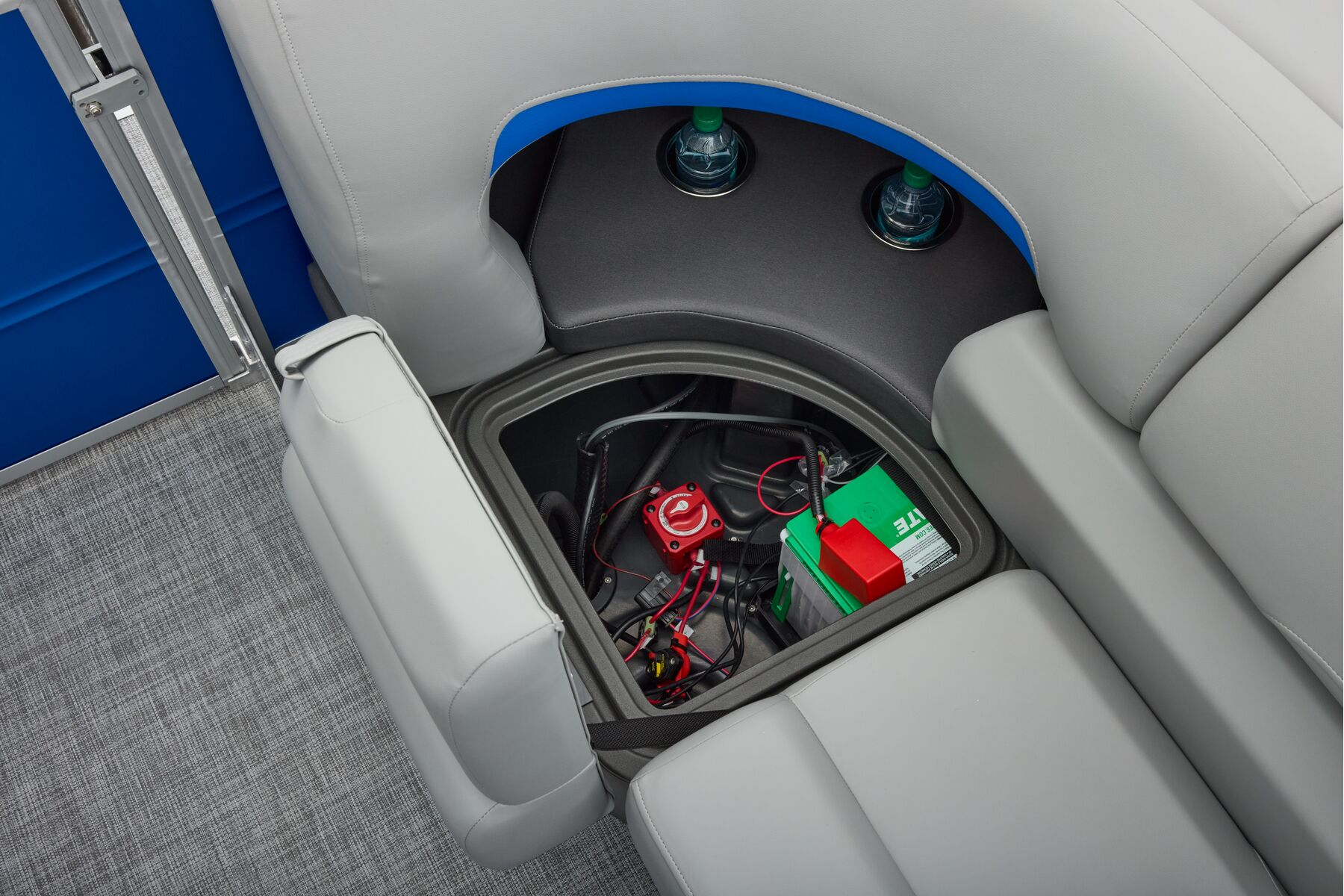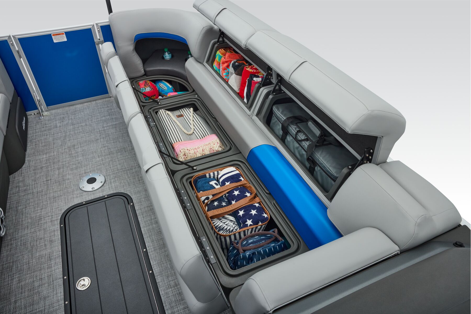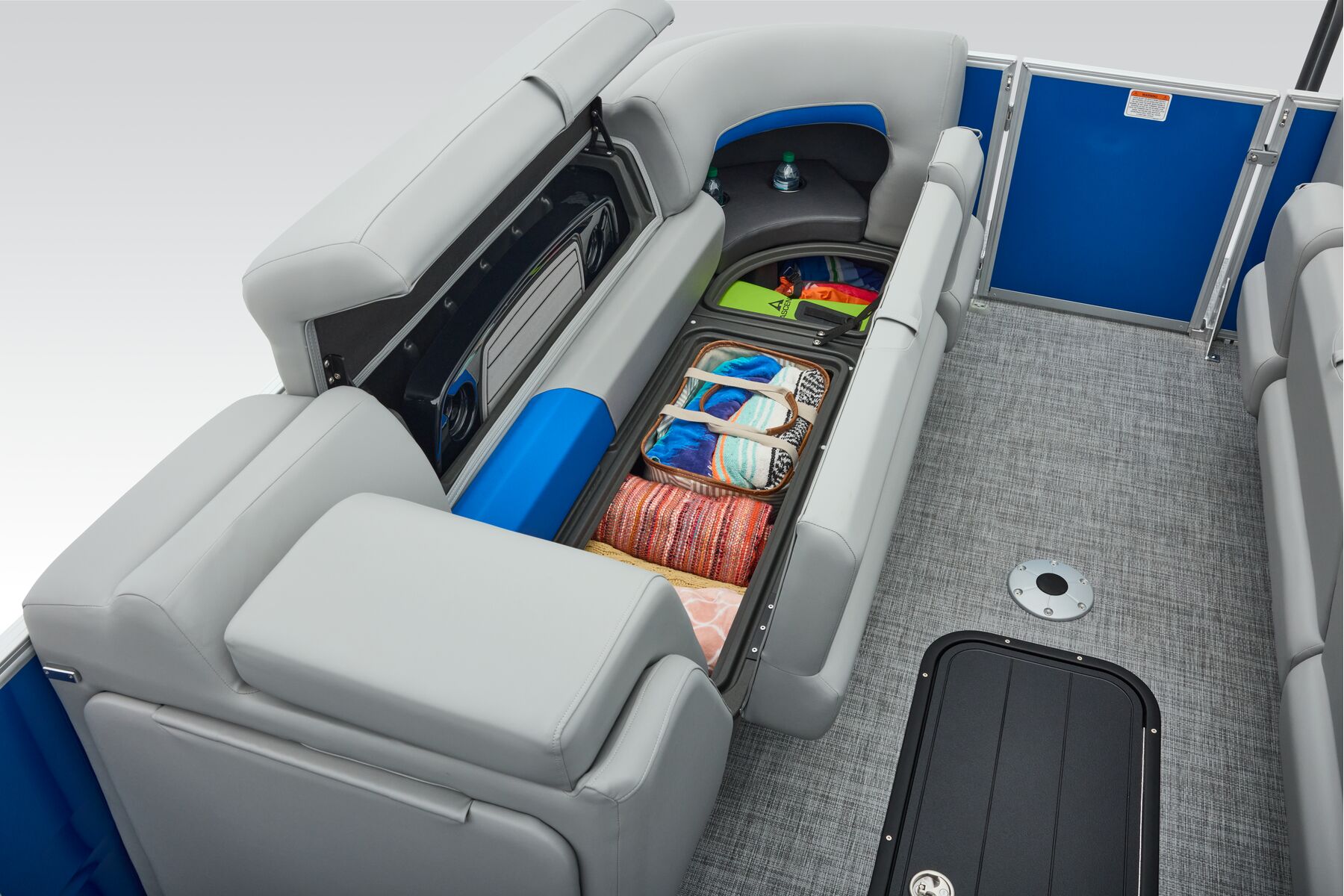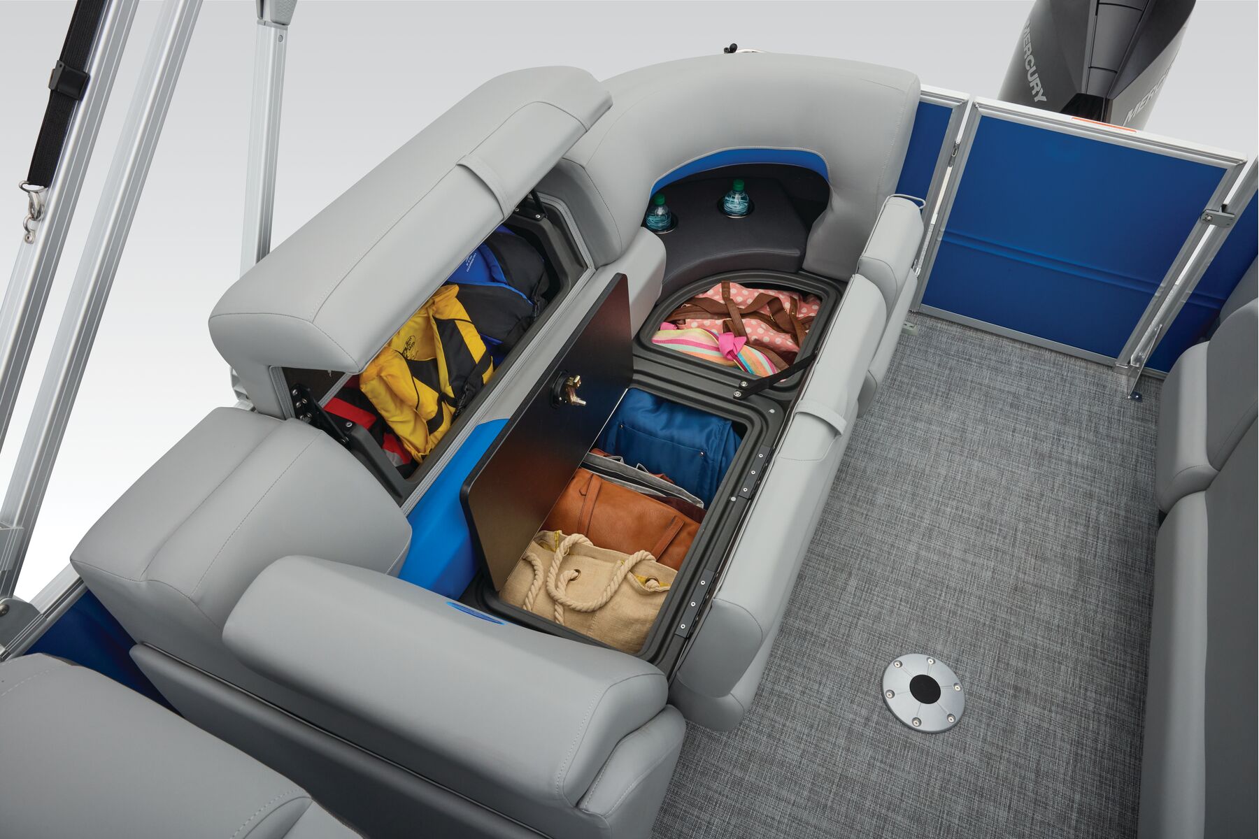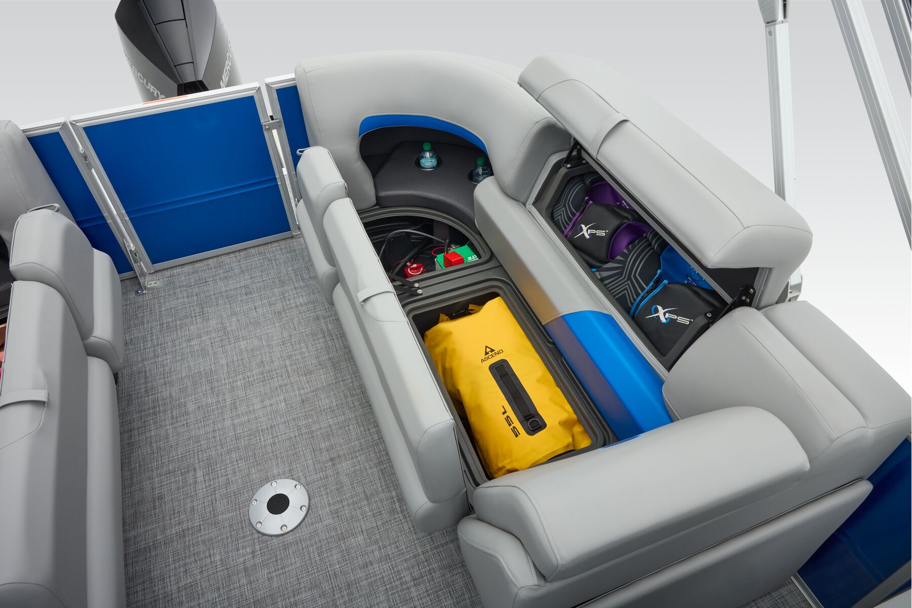 The captain can control everything through the completely redesigned console's new SUN TRACKER FLARE™ touch-screen gauge display with an improved GPS system and upgraded four-speaker Bluetooth®-capable stereo.