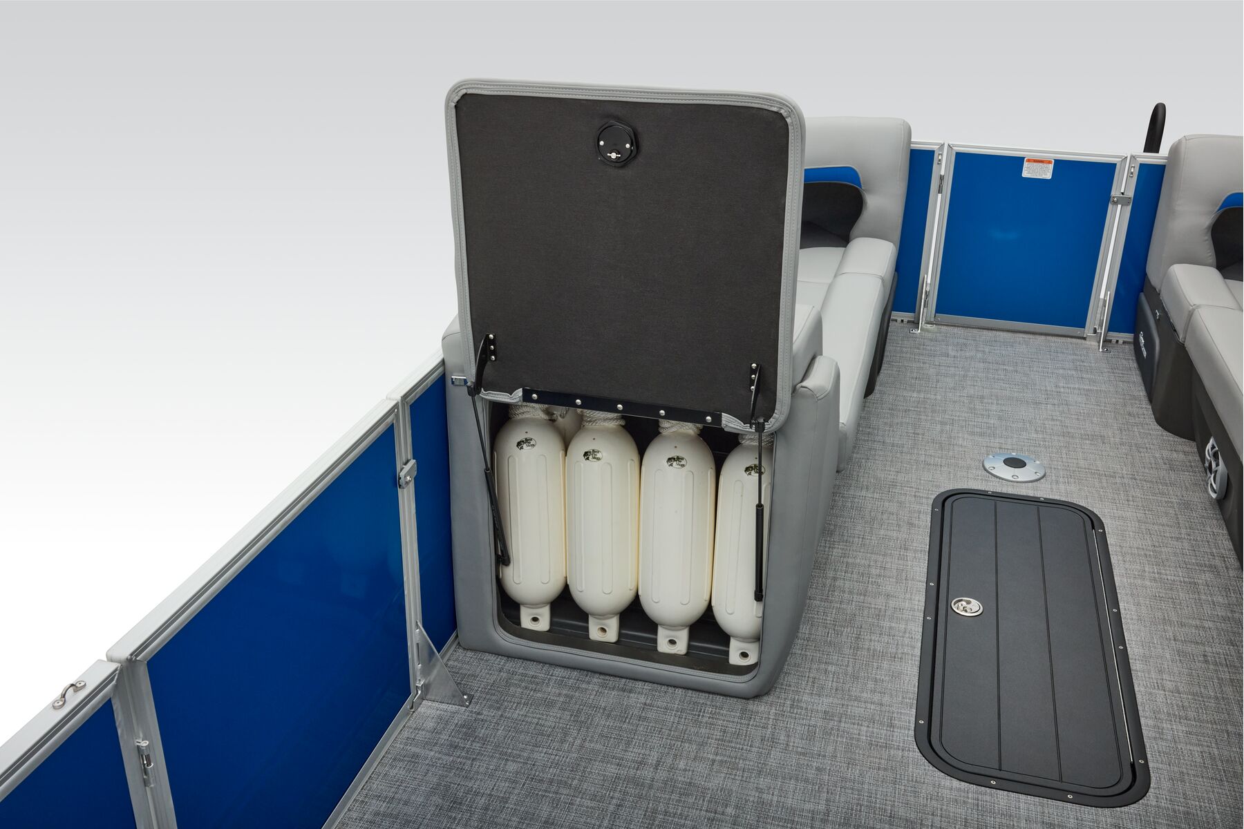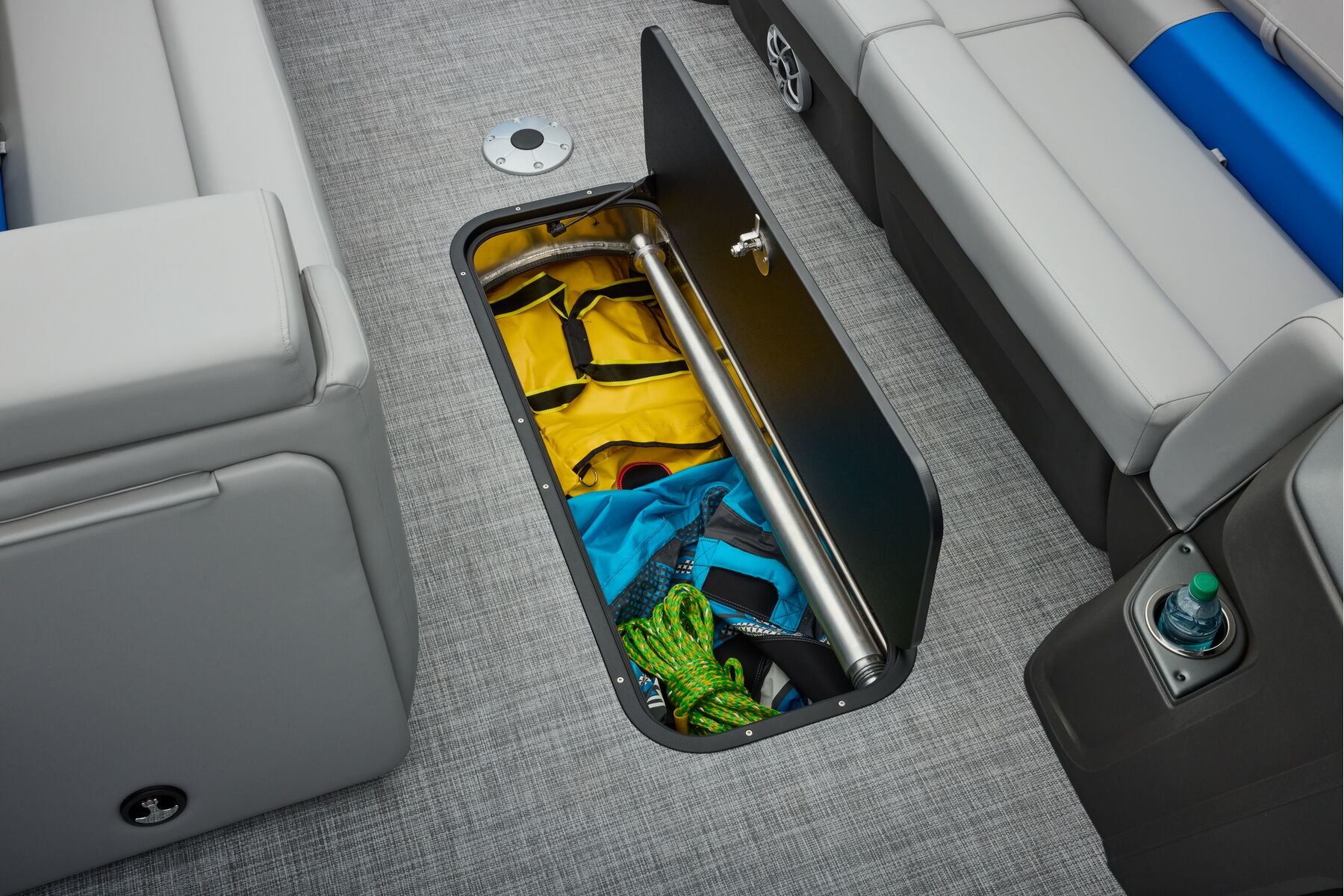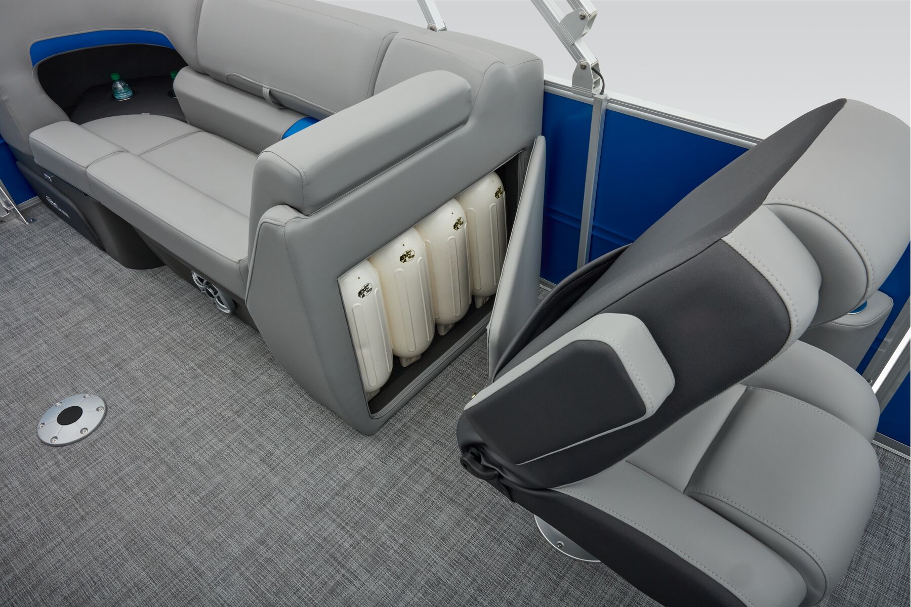 Each corner features a long pillow-top lounge with secret storage spaces under the seats and in the STOW MORE™ seat backs to give you all the space you need to pack snacks, equipment, supplies, and more. New to the 2026 model year are the backrest cubbies that give you extra easy-access storage space and cupholders. This new year also brings premium weave flooring and upholstery accents that match the color of your fencing.